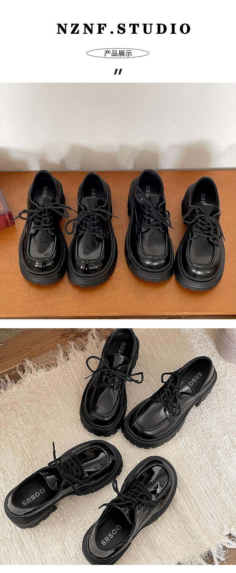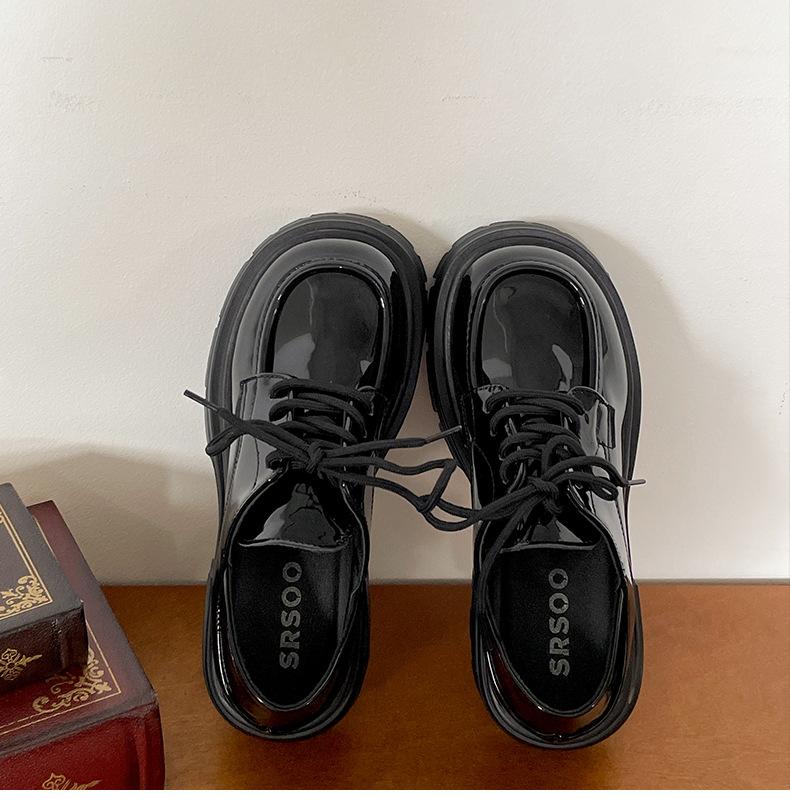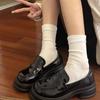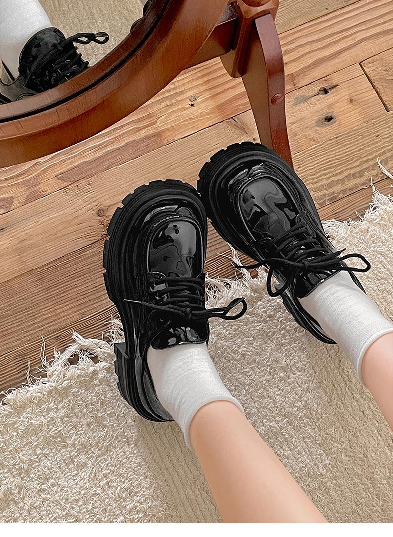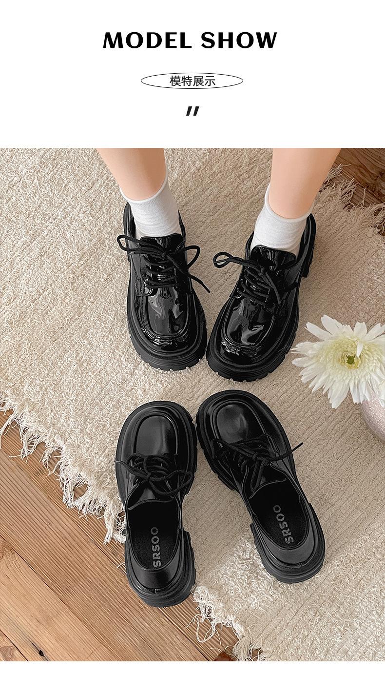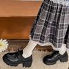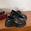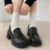 Zapatos pequeños de cuero negro estilo británico de punta redonda, plataforma de tacón alto grueso, zapatos de mujer 2025 nuevo verano versátiles mocasines de suela blanda