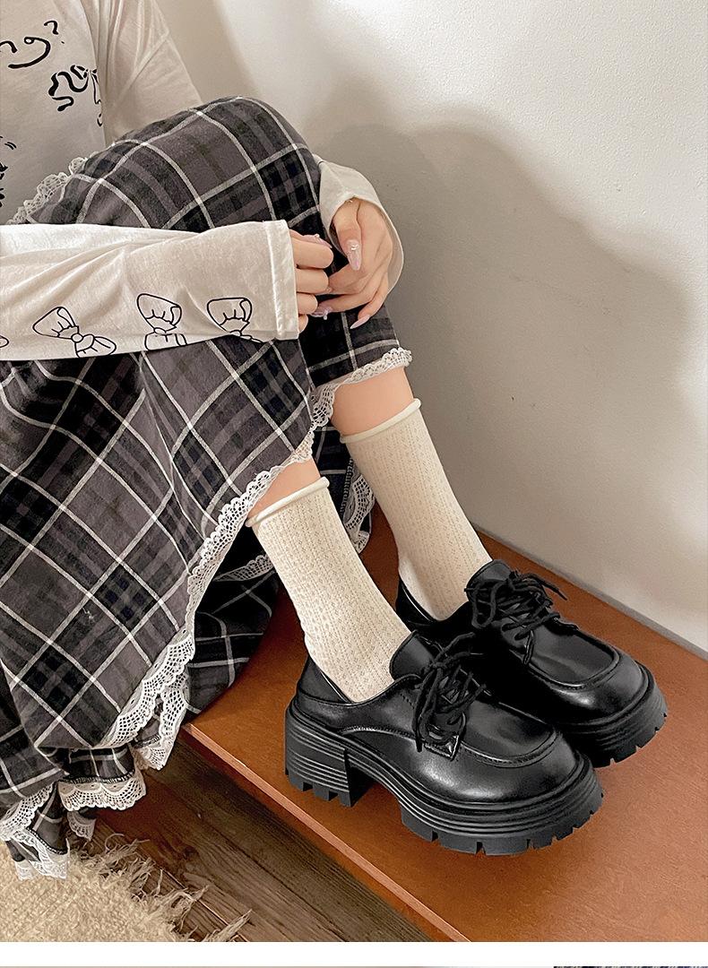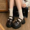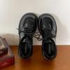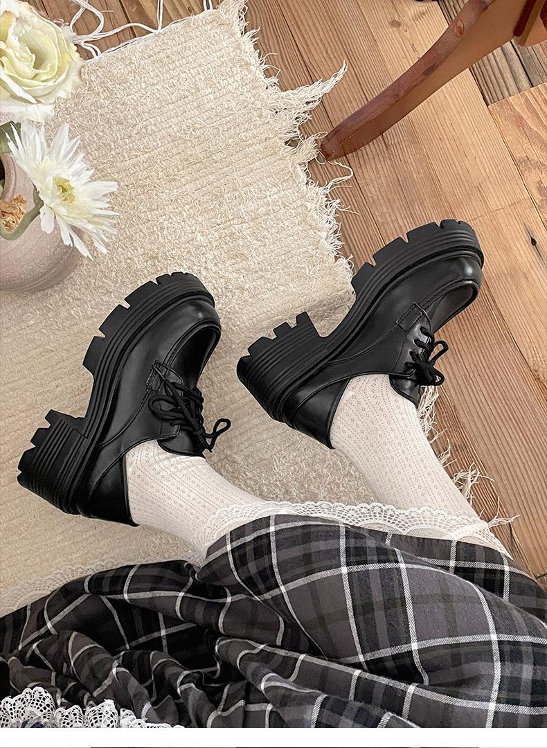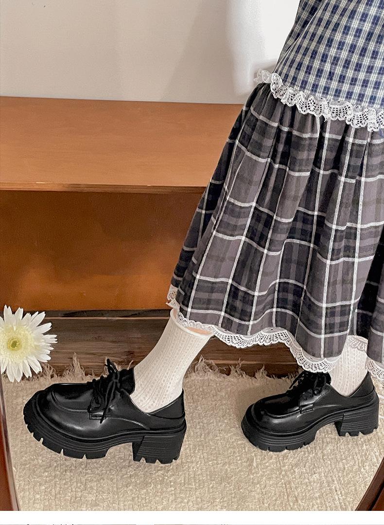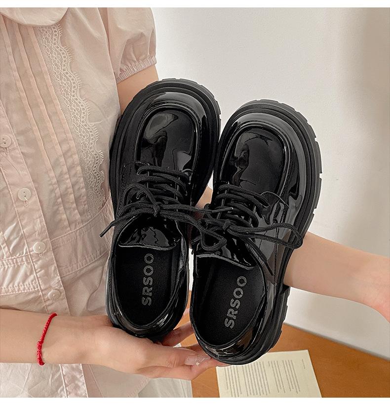 Zapatos pequeños de cuero negro estilo británico de punta redonda, plataforma de tacón alto grueso, zapatos de mujer 2025 nuevo verano versátiles mocasines de suela blanda