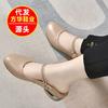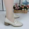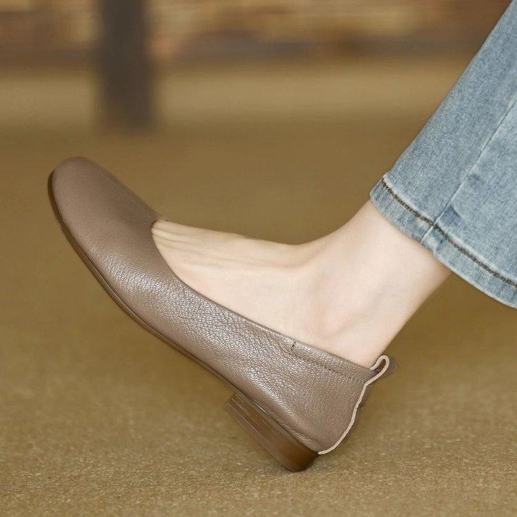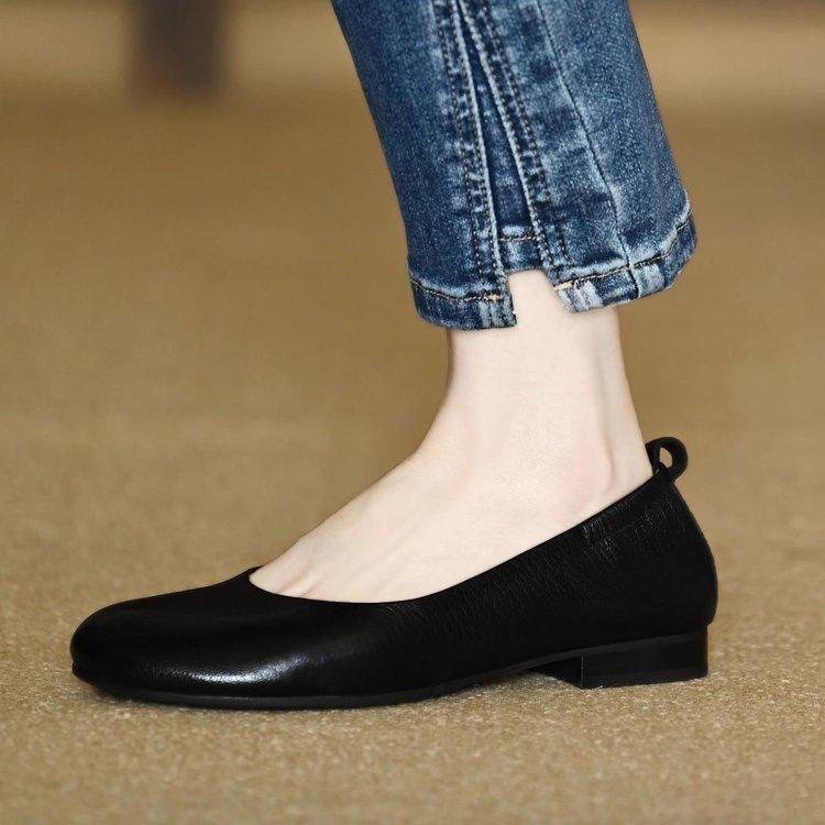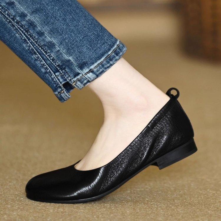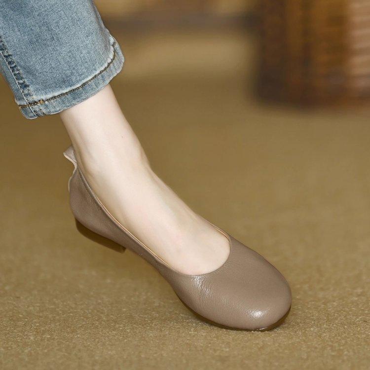 Zapatos planos de piel suave estilo francés con punta redonda para mujer 2025 nuevos cómodos de suela suave sin cordones de tacón bajo boca escotada zapatos de mamá