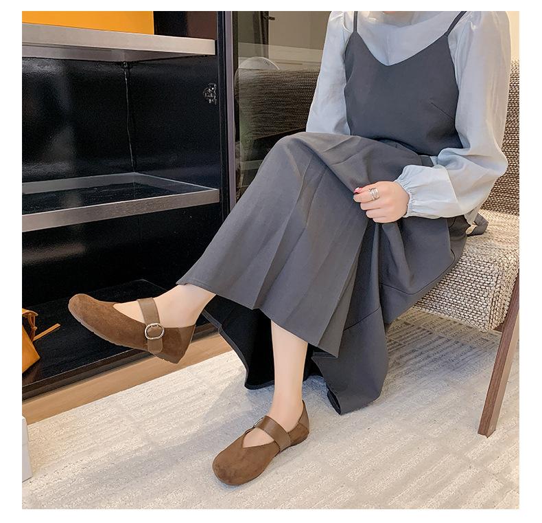 Zapatos planos de temperamento con punta redonda para mujer 2025 nuevos primavera y otoño estilo retro francés Mary Jane zapatos de cuero pequeños escotados para ir al trabajo