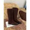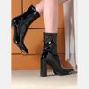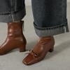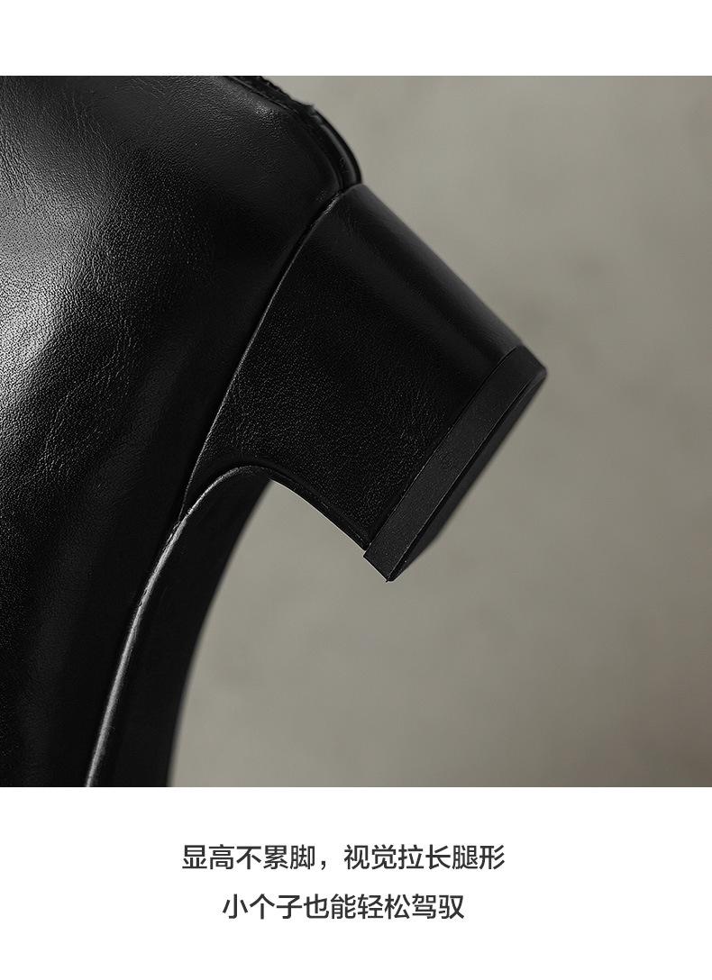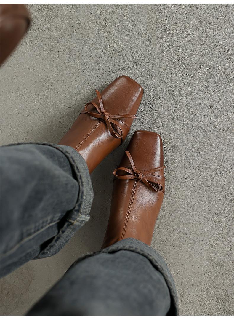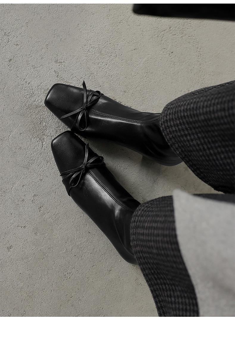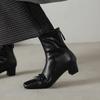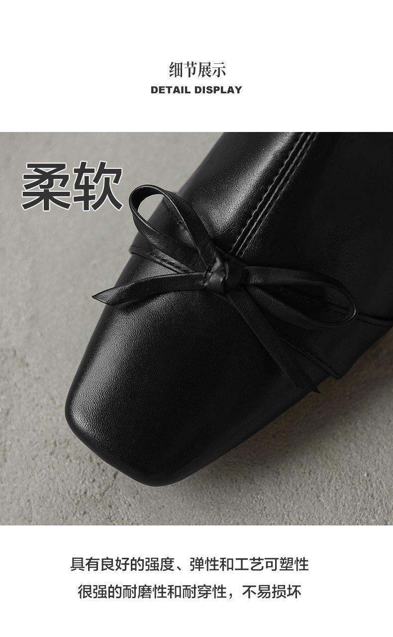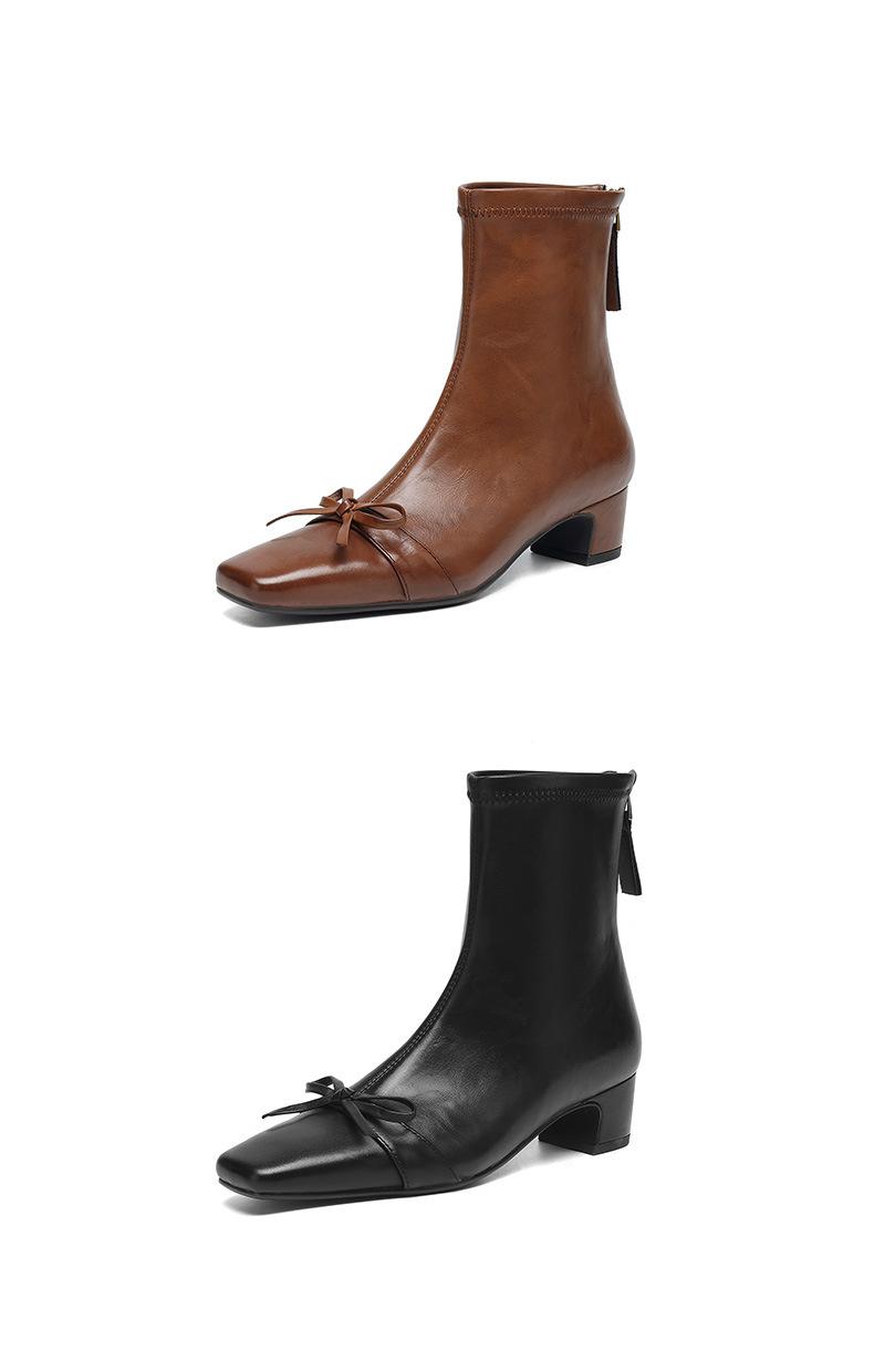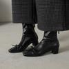 2025 Otoño/Invierno Nuevas Botas de Piel de Oveja Punta Cuadrada Tacón Grueso Lazo Estilo Coreano Elásticas Adelgazantes Botines de Tobillo de Tacón Alto Francés Botas de Mujer
