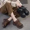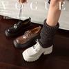 Jay Chou 2025 Otoño/Invierno Nuevo Cuero Vacuno Capa Superior Tacón de Plataforma Ligero con Cordones Zapatos Individuales de Mujer Casual Moda Versátil