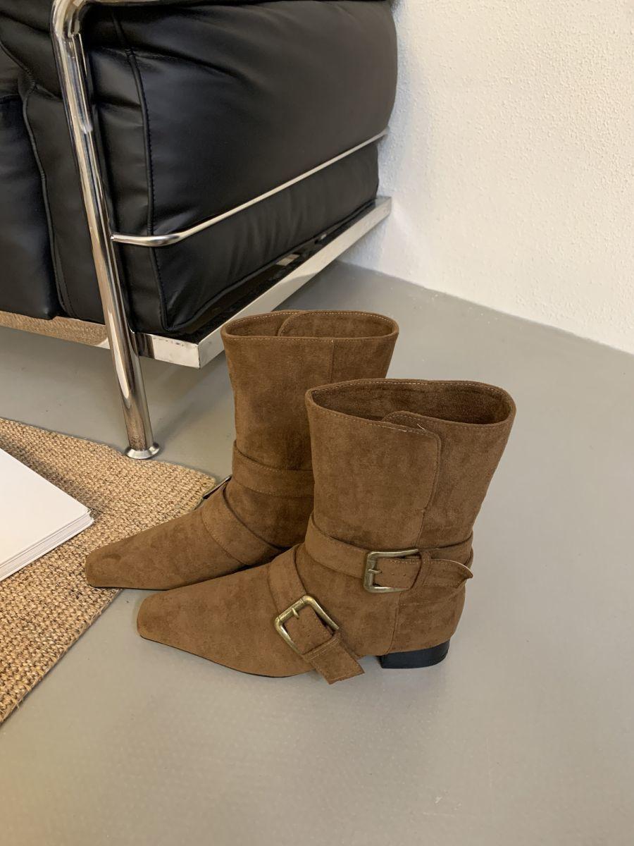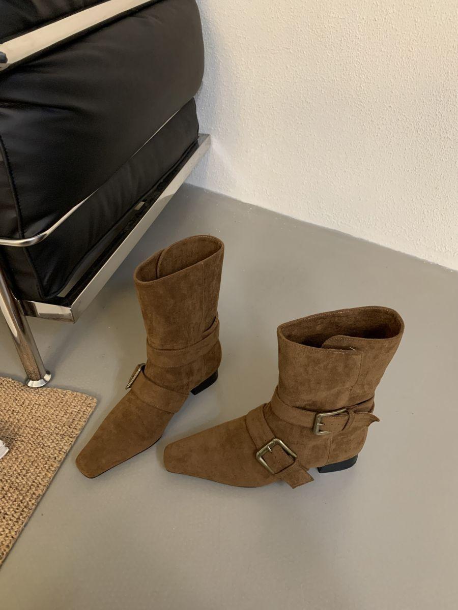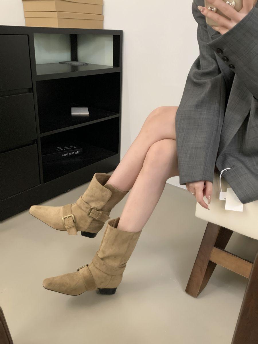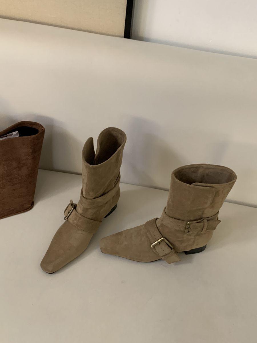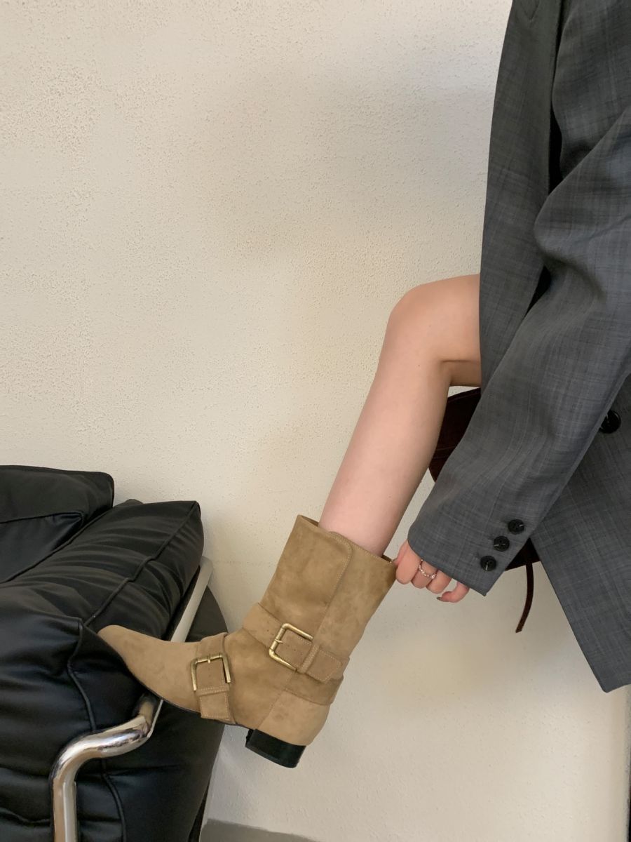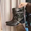 Botines Cortos de Tacón Grueso Retro con Hebilla de Cinturón y Punta Afilada Otoño Invierno 2025 Nuevos Botines de Tobillo con Temperamento Botas Vaqueras Botas de Caballero Mujer