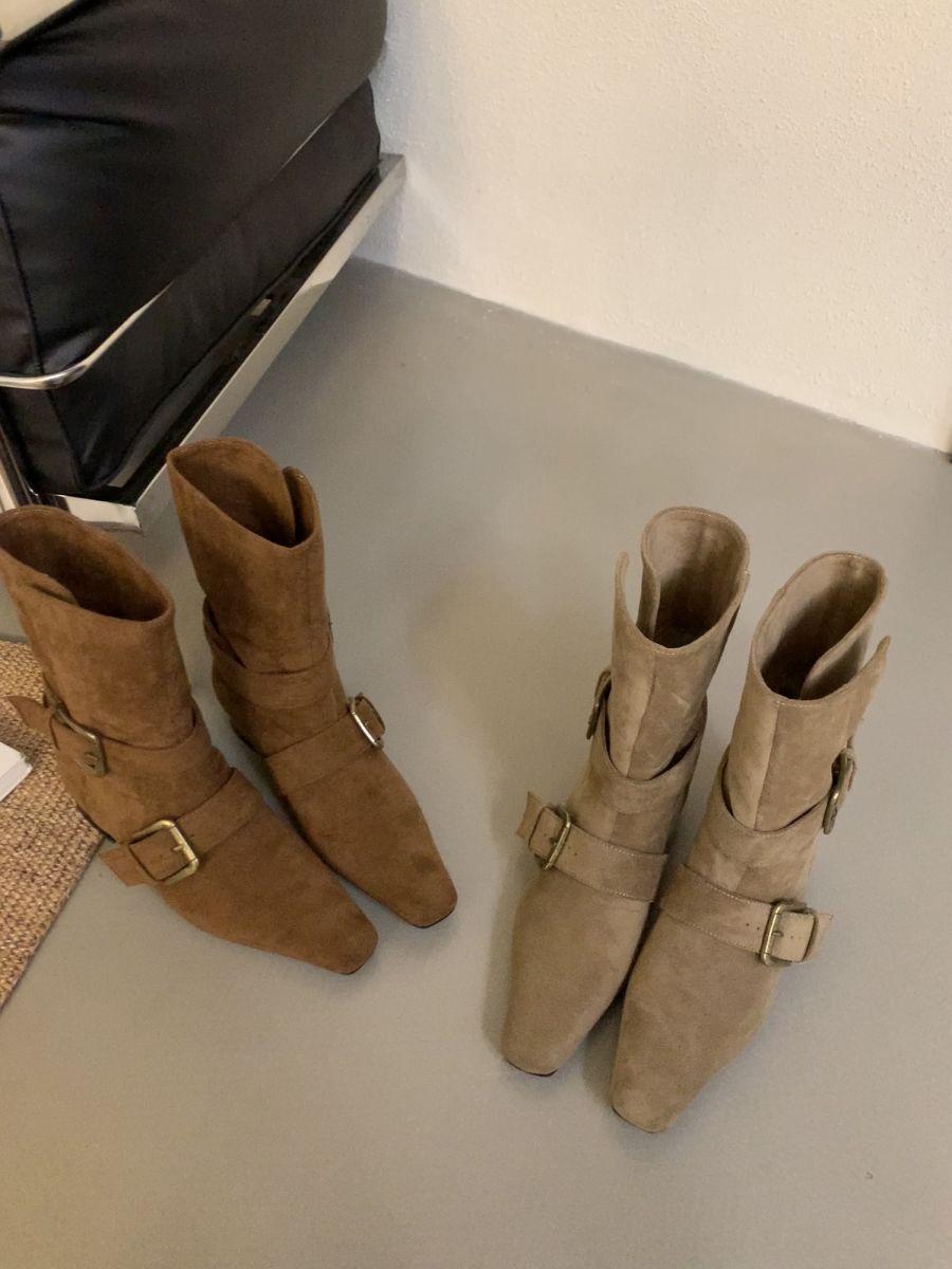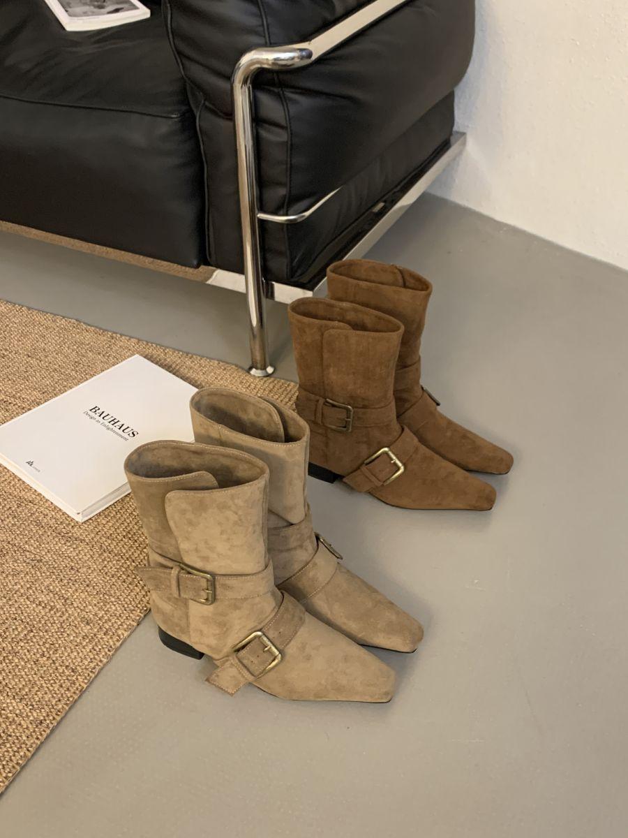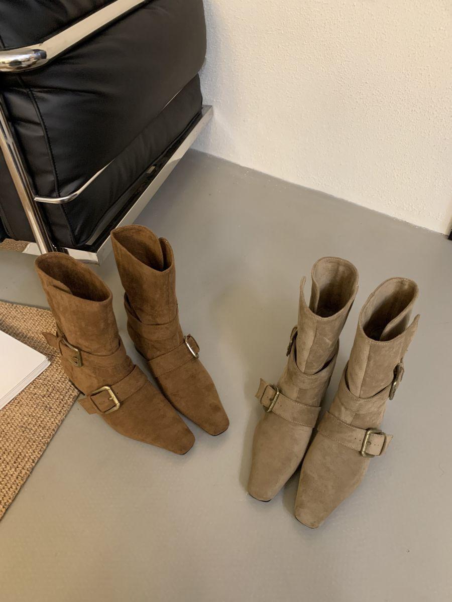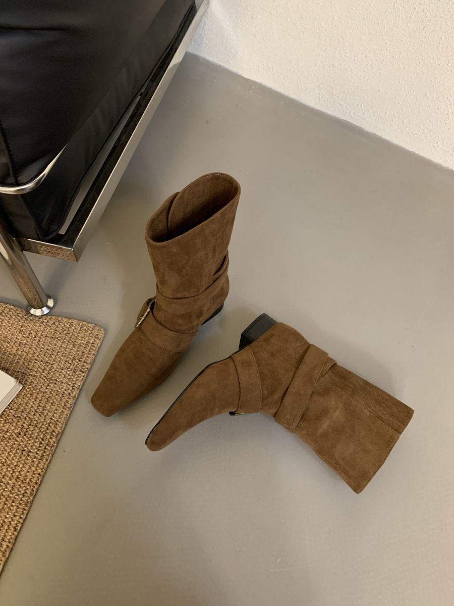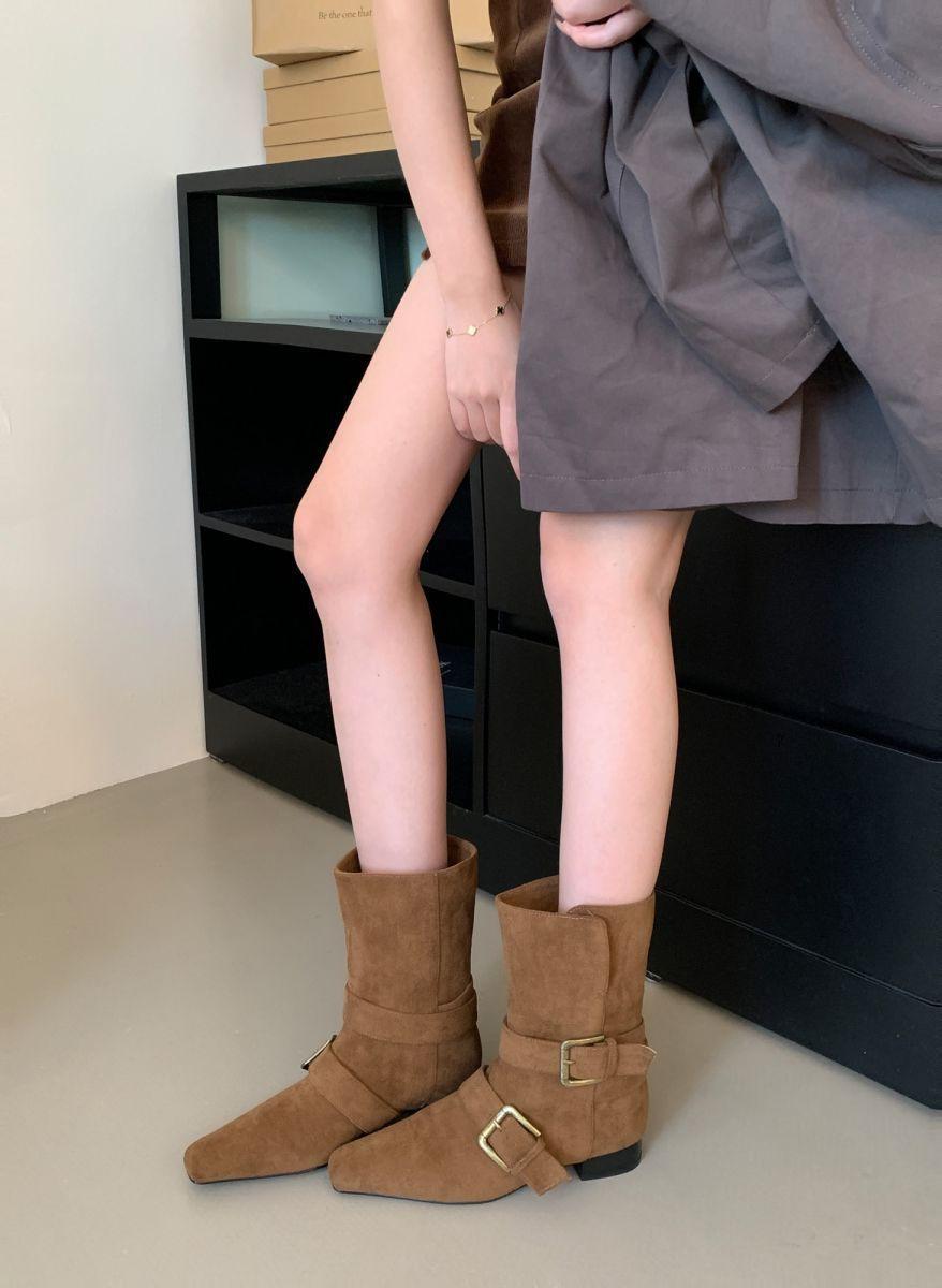 Botines Cortos de Tacón Grueso Retro con Hebilla de Cinturón y Punta Afilada Otoño Invierno 2025 Nuevos Botines de Tobillo con Temperamento Botas Vaqueras Botas de Caballero Mujer
