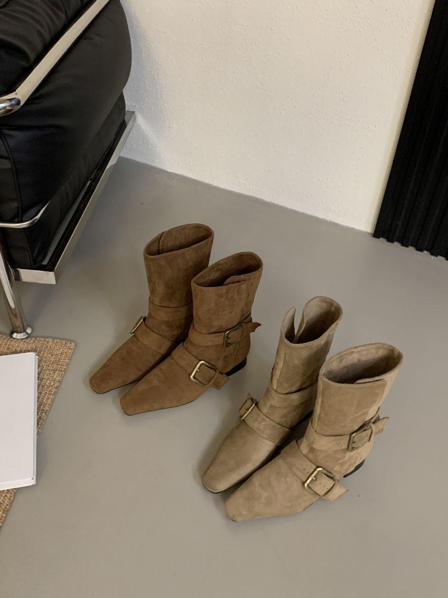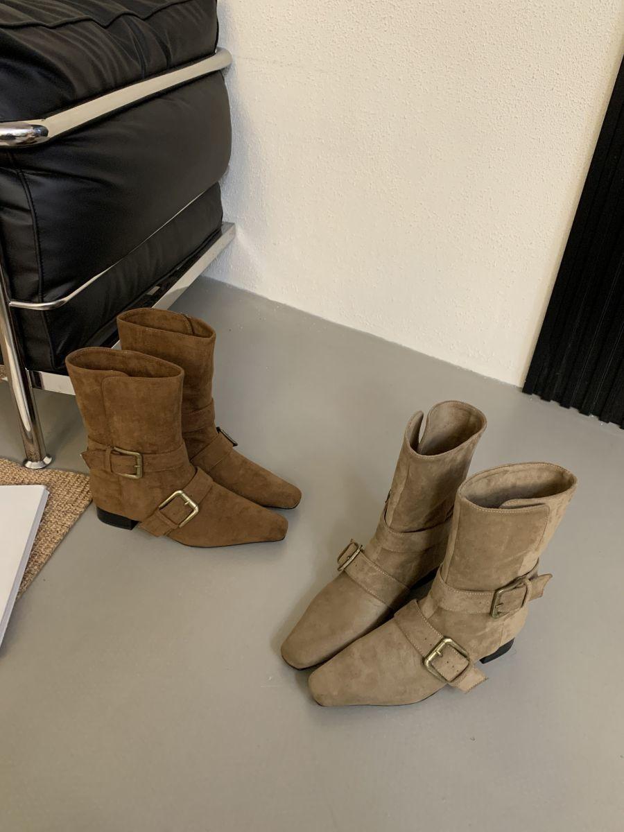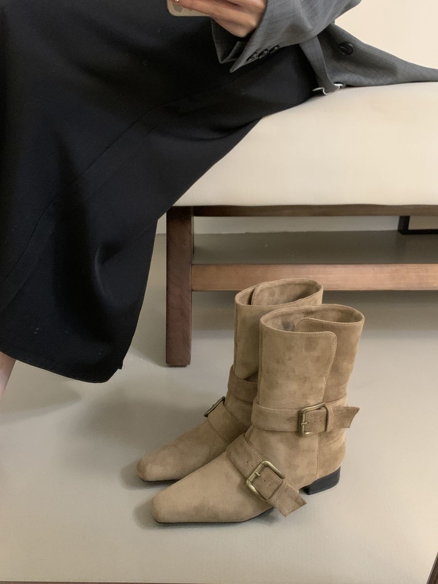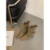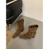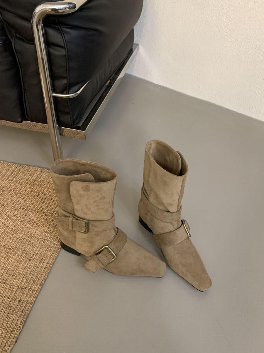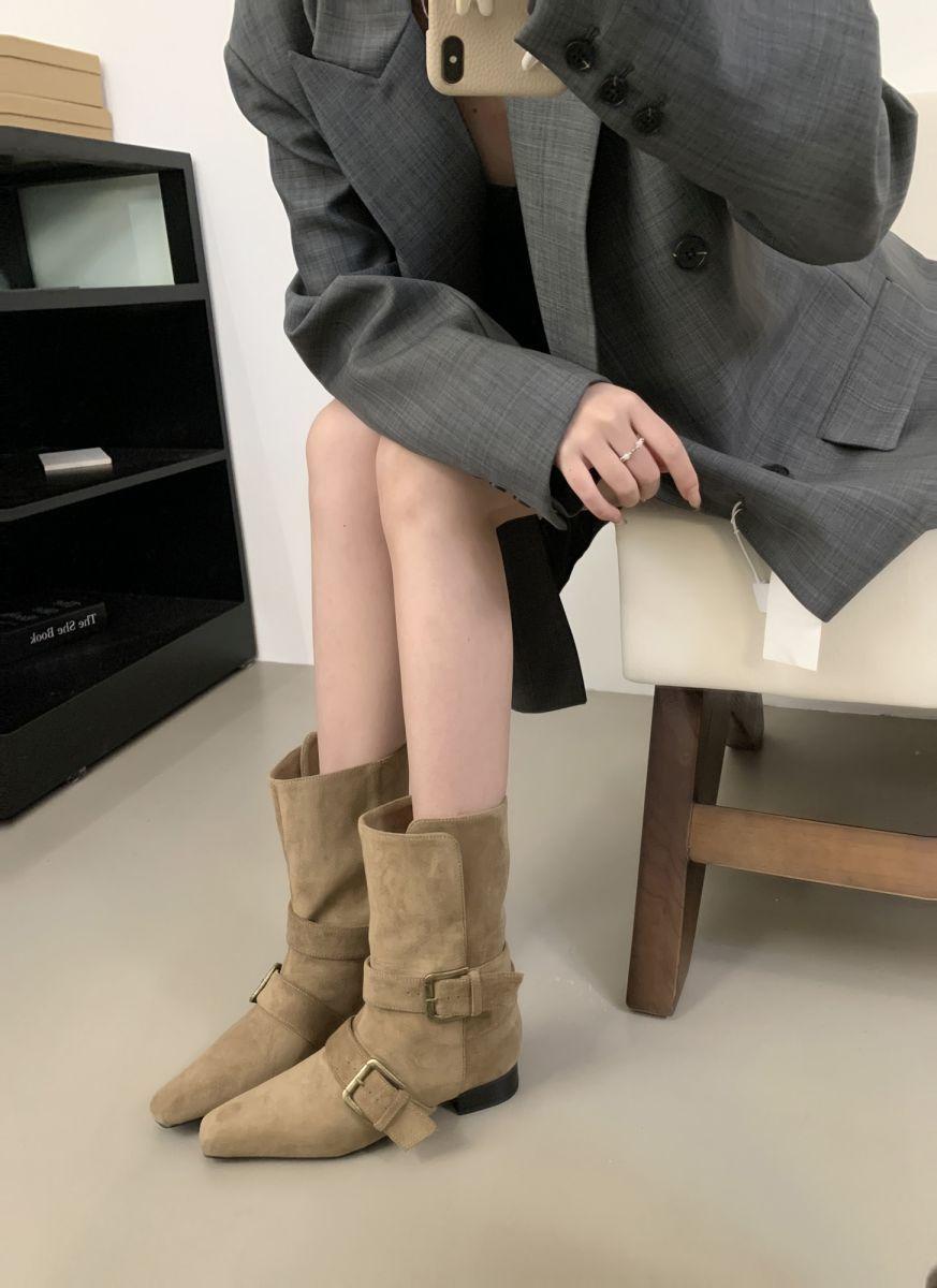 Botines Cortos de Tacón Grueso Retro con Hebilla de Cinturón y Punta Afilada Otoño Invierno 2025 Nuevos Botines de Tobillo con Temperamento Botas Vaqueras Botas de Caballero Mujer