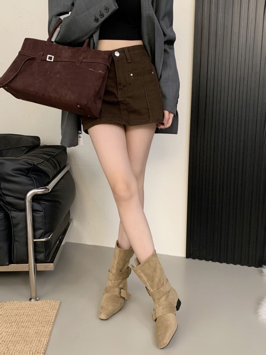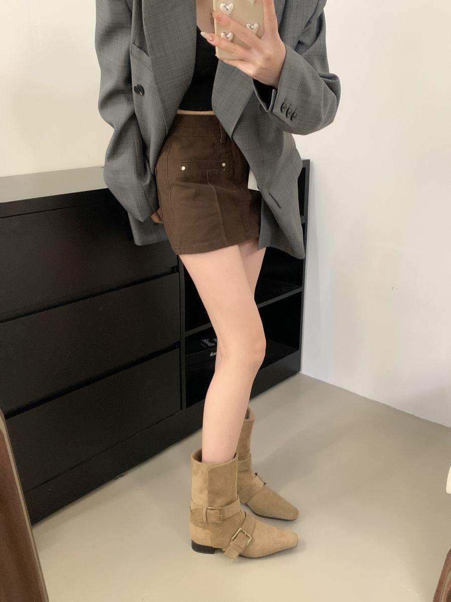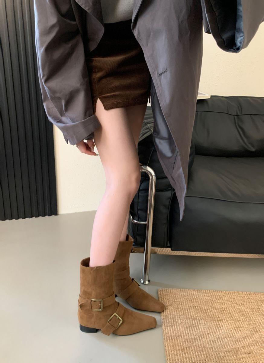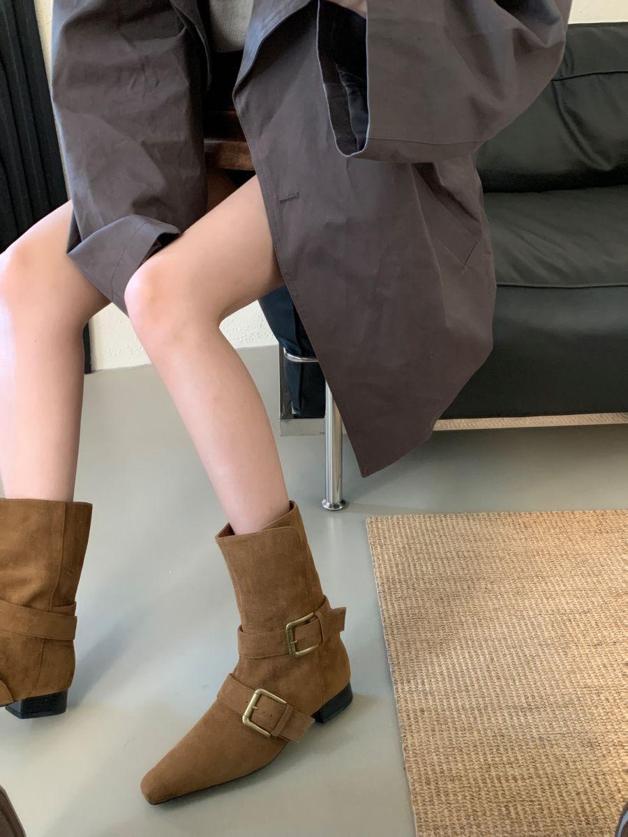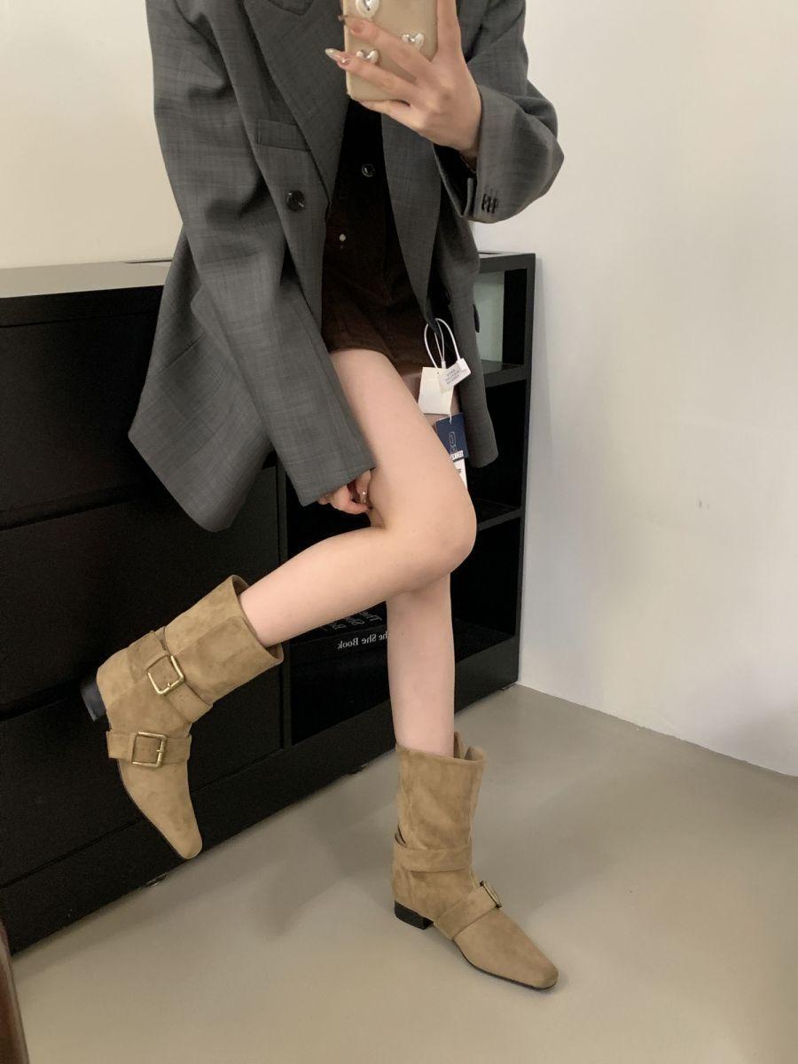 Botines Cortos de Tacón Grueso Retro con Hebilla de Cinturón y Punta Afilada Otoño Invierno 2025 Nuevos Botines de Tobillo con Temperamento Botas Vaqueras Botas de Caballero Mujer