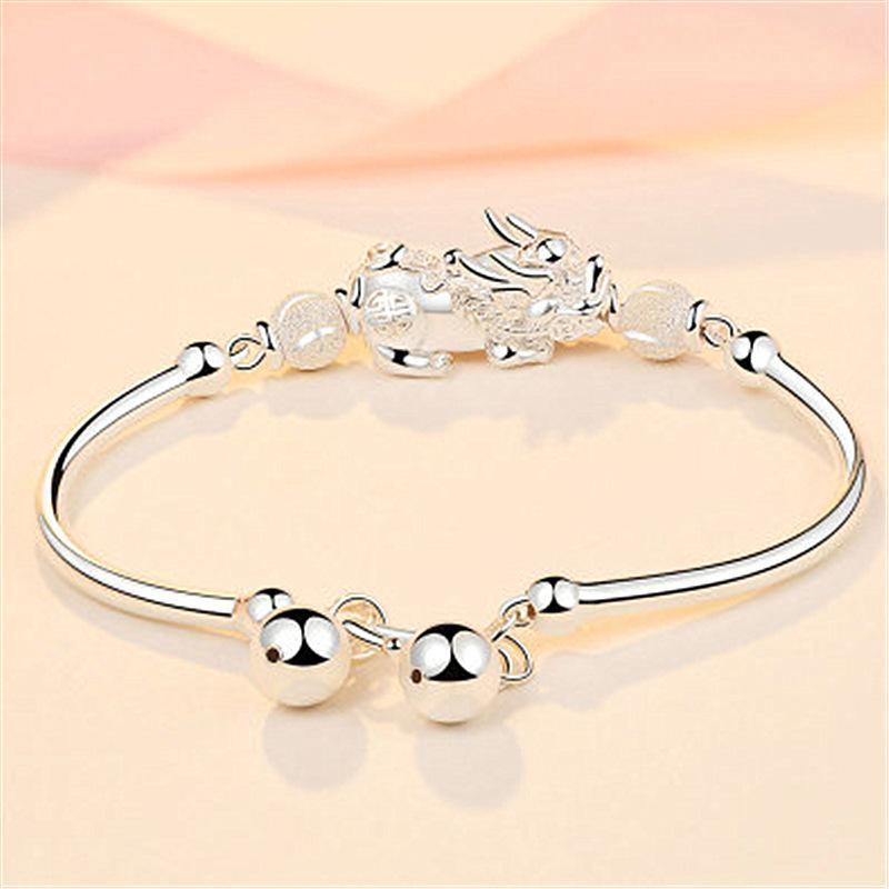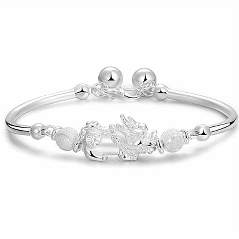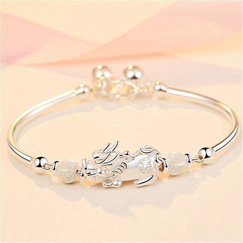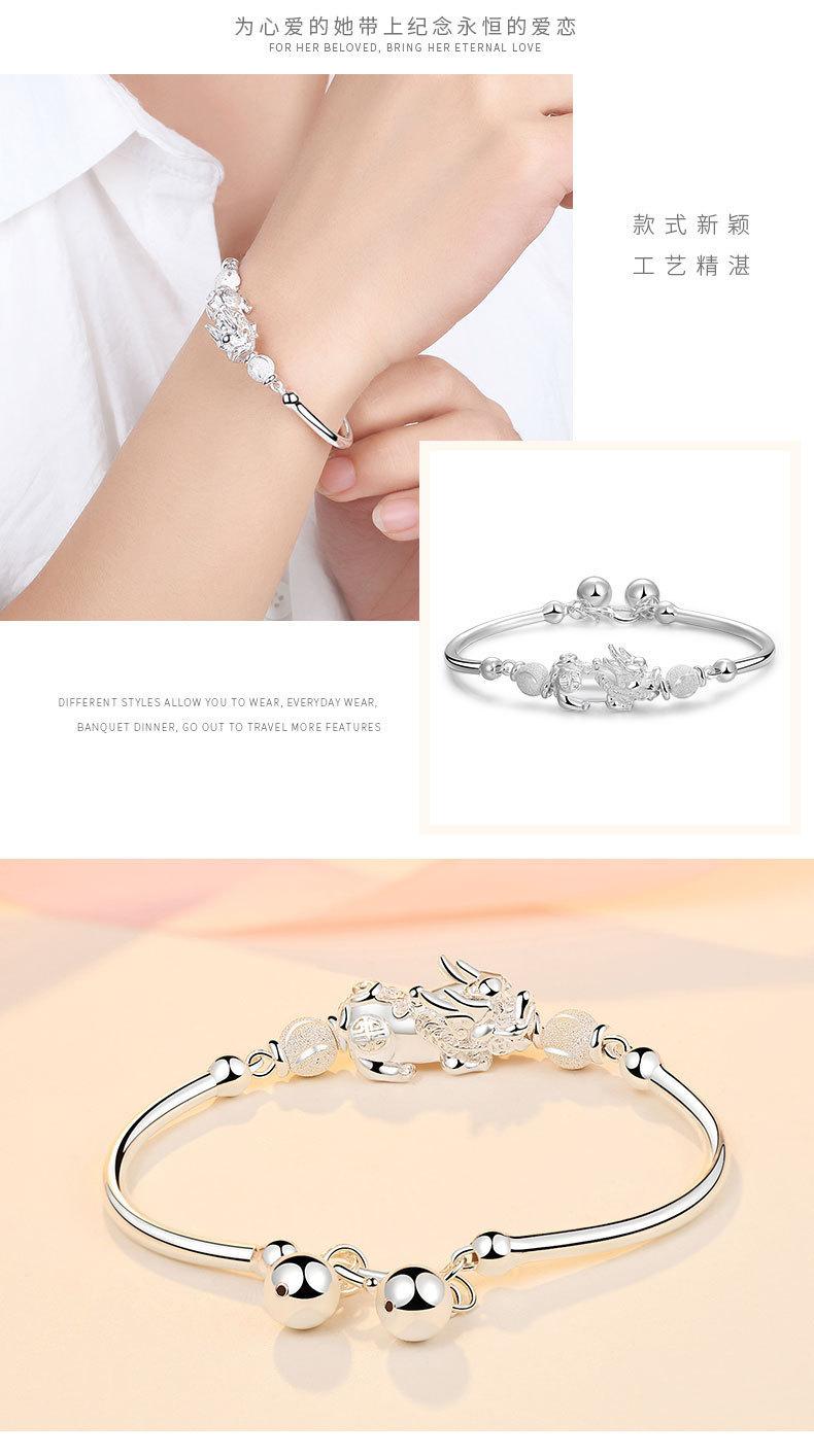 Pulsera de moda estilo coreano plateada pulsera de cuentas de diente de luna auspiciosa pulsera de campana de moda simple
