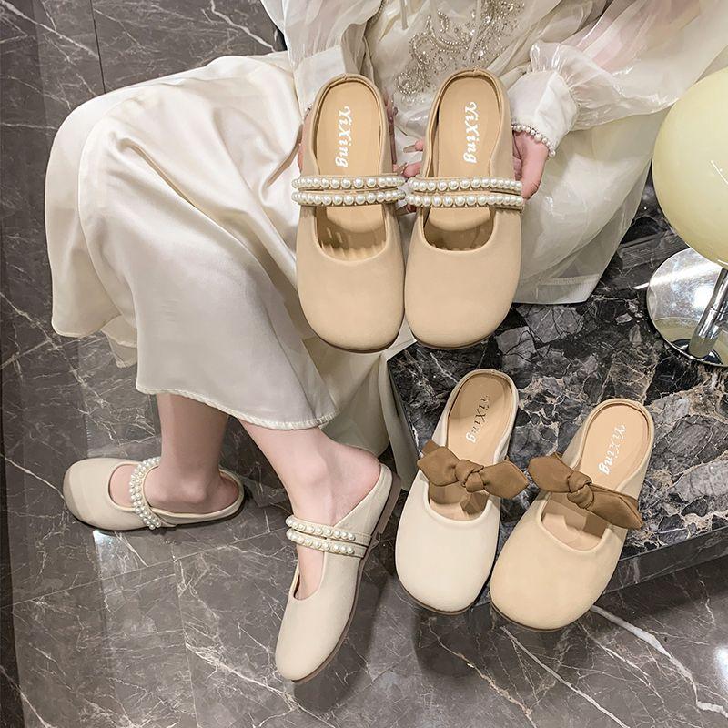 Pantuflas para Mujer para Usar Afuera 2025 Nuevas Verano Plano Puntera Cerrada Antideslizantes Perezosas Medias Pantuflas Zapatillas Frescas de Noche para Mujer