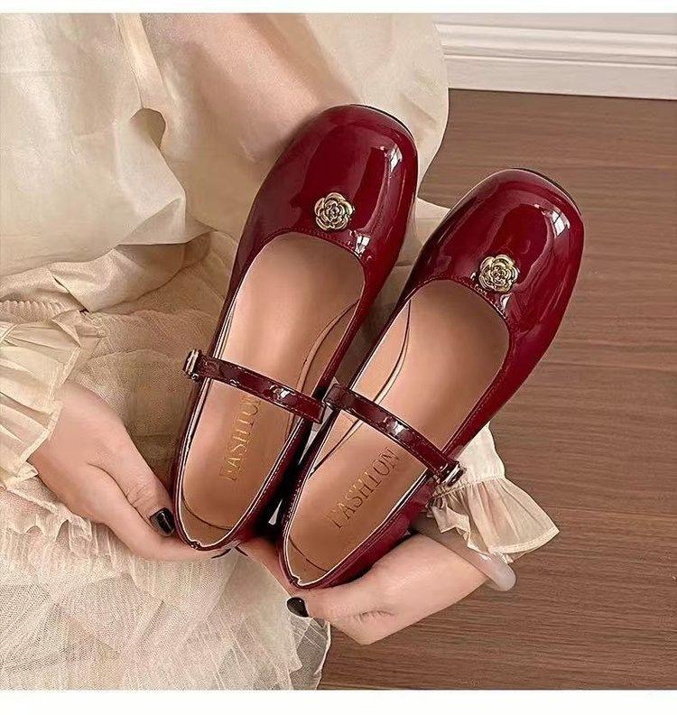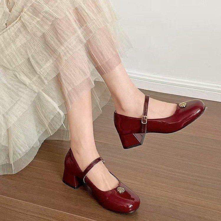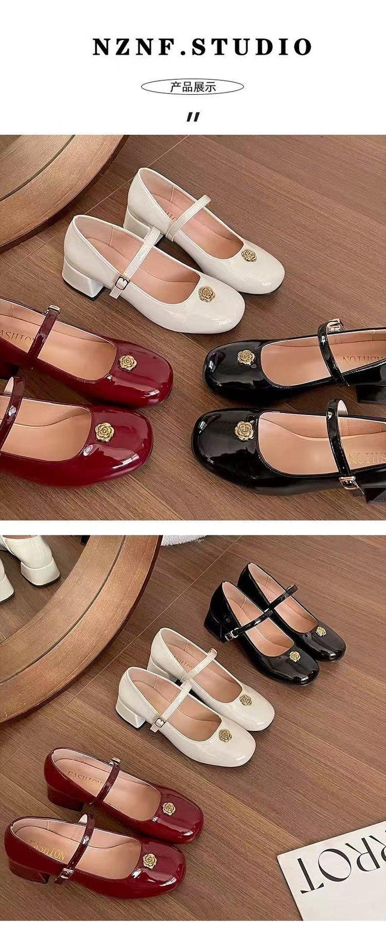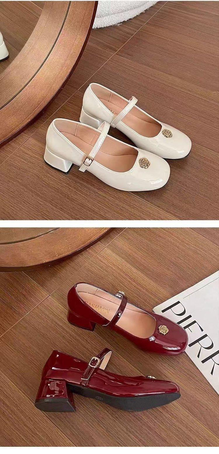 Zapatos Mary Jane de Camelia Francesa para Mujer 2025 Nuevo Estilo de Noche Zapatos Sencillos Delicados Zapatos de Otoño para Mujer con Correa Única y Tacón Medio
