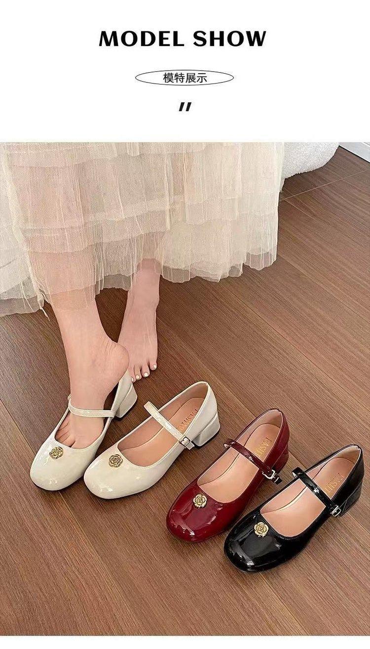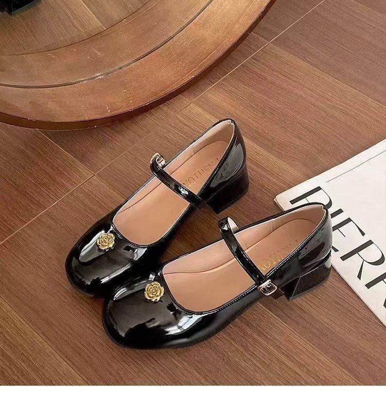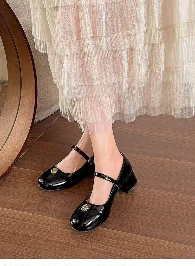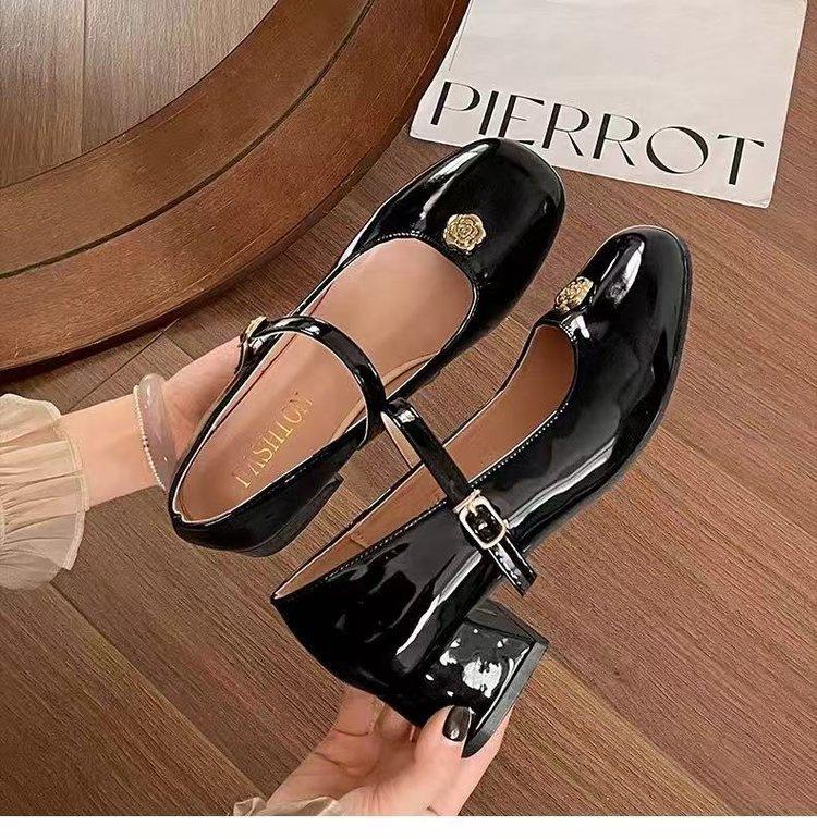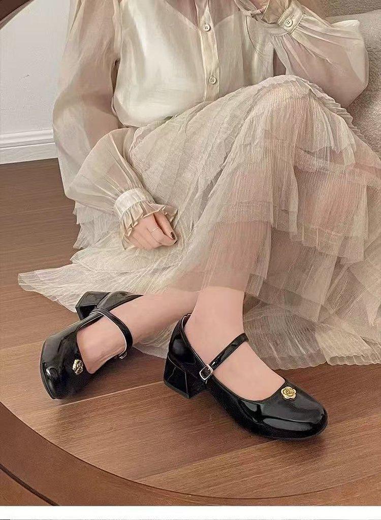 Zapatos Mary Jane de Camelia Francesa para Mujer 2025 Nuevo Estilo de Noche Zapatos Sencillos Delicados Zapatos de Otoño para Mujer con Correa Única y Tacón Medio