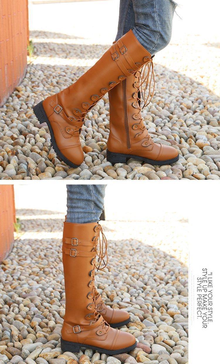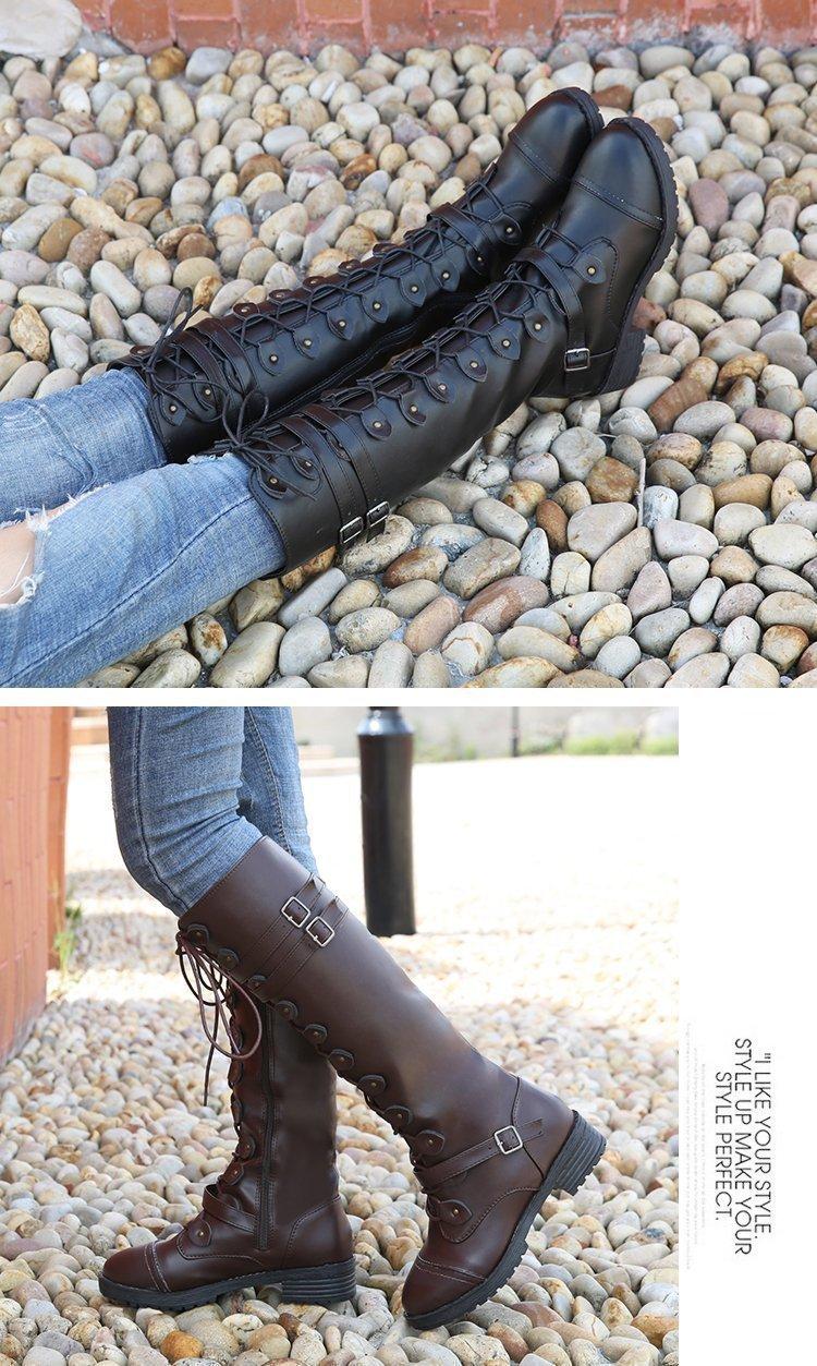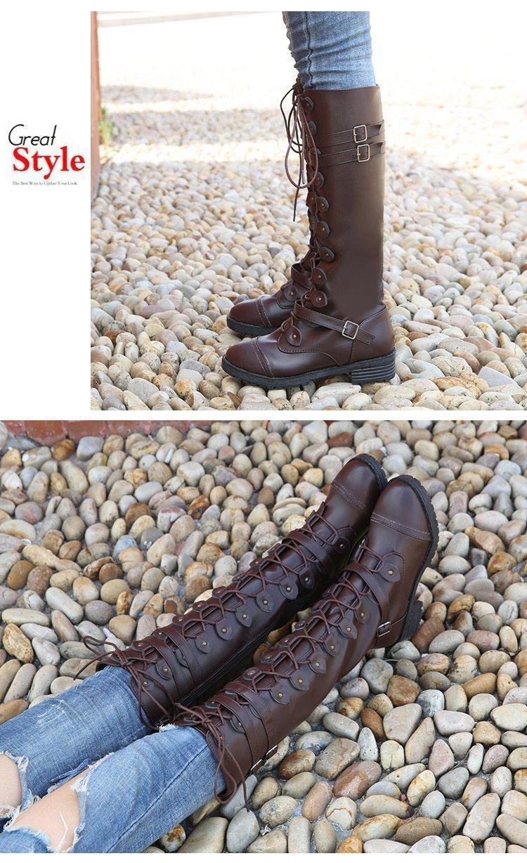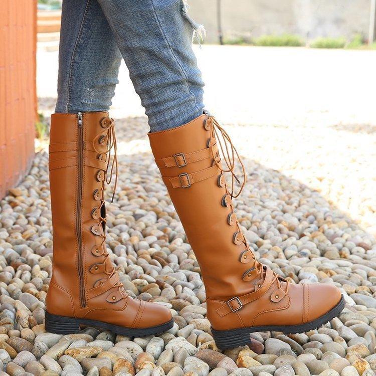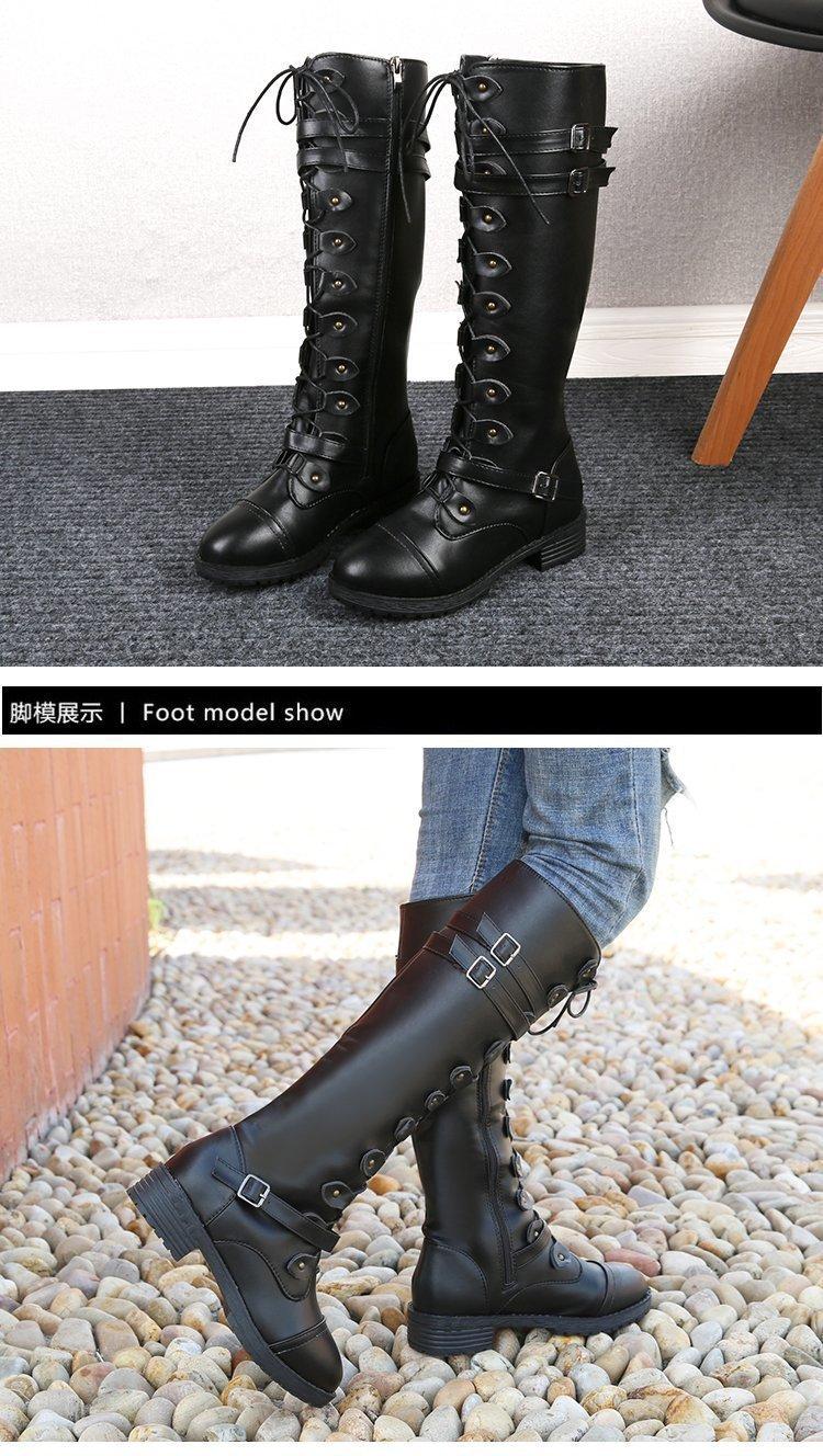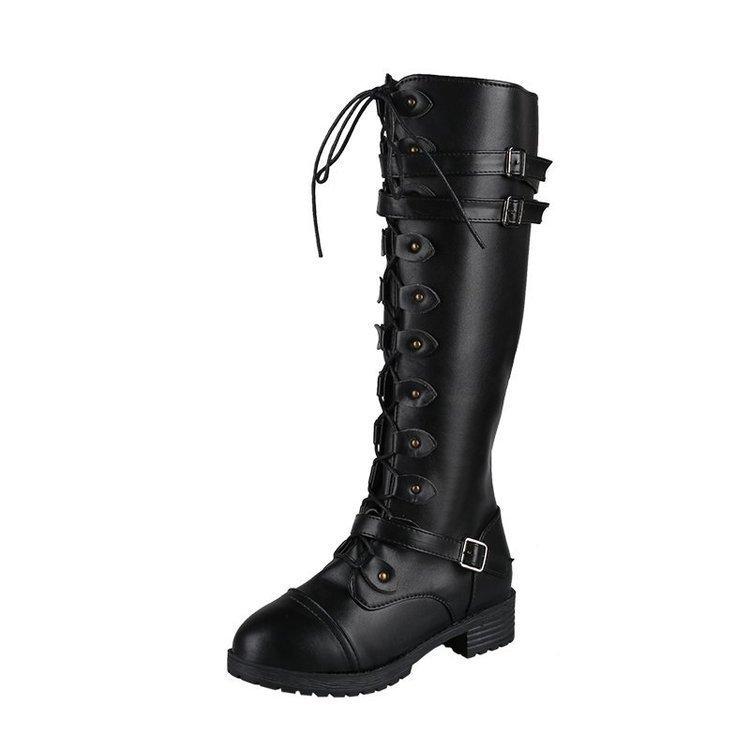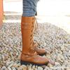 2020 invierno popular comercio exterior europeo y americano moda punta redonda tacón medio con cordones botas por encima de la rodilla cremallera lateral talla grande botas de mujer