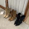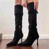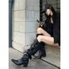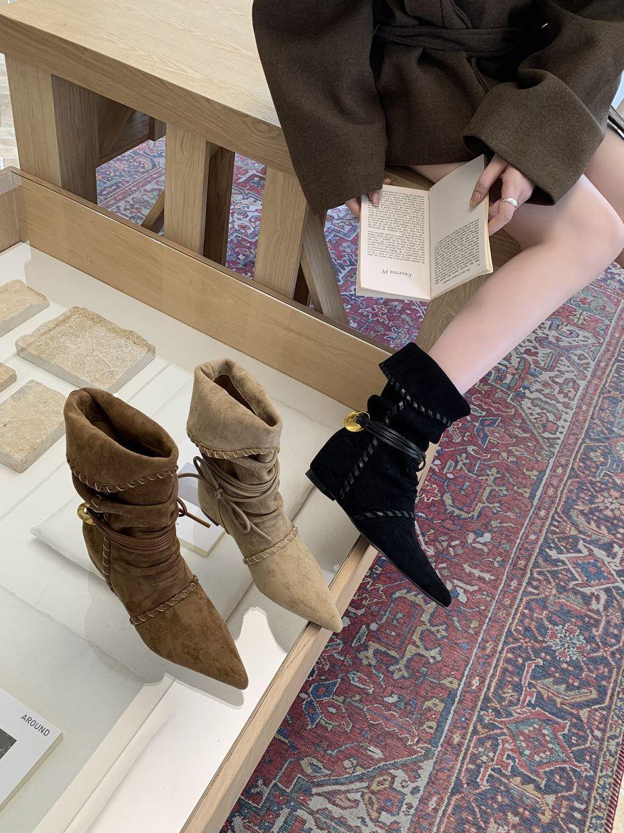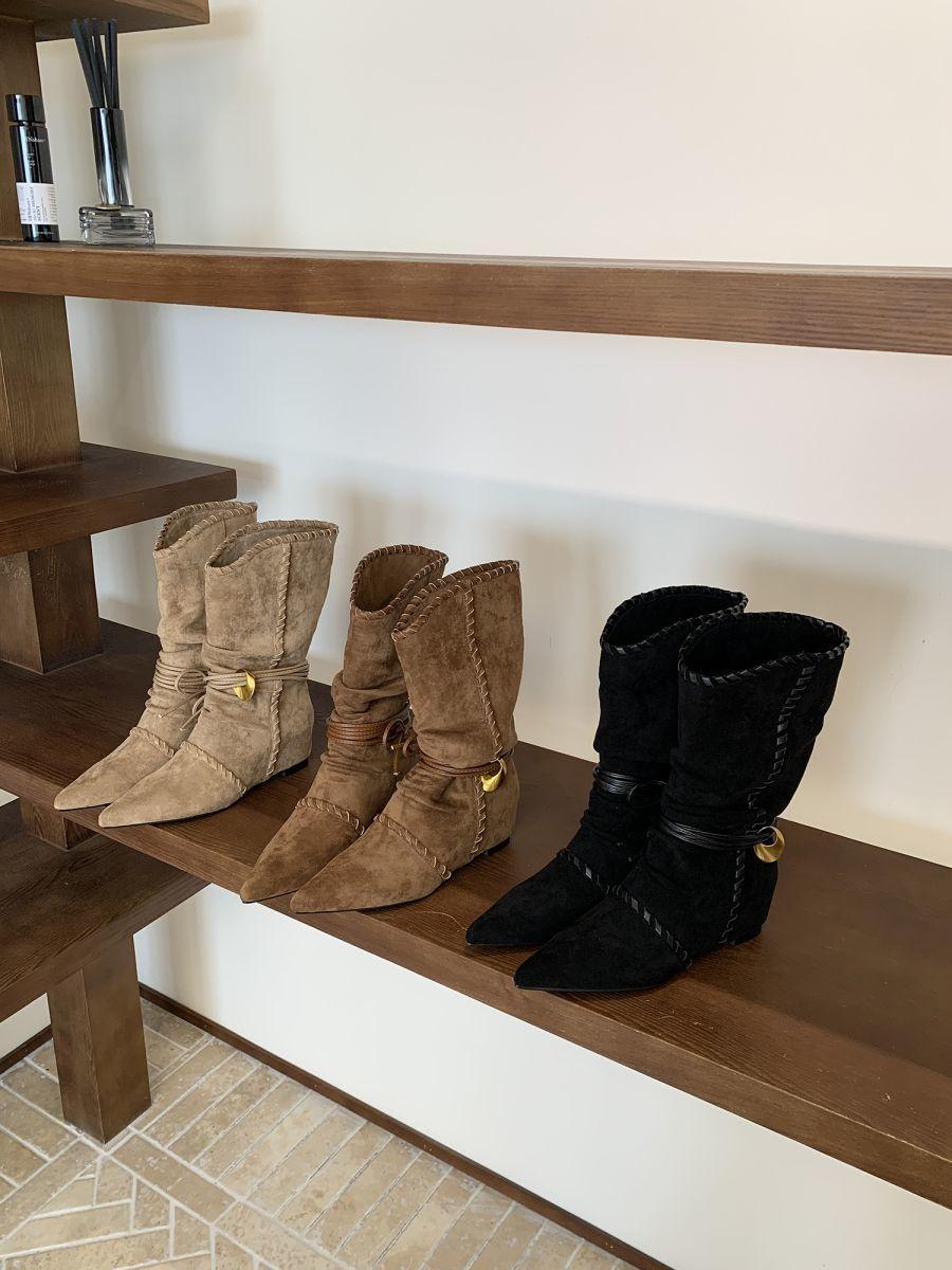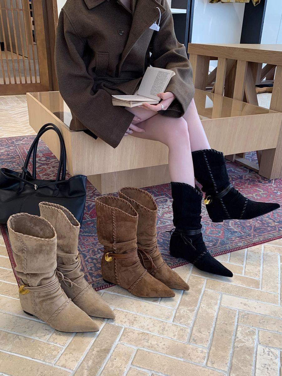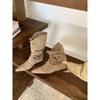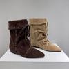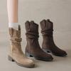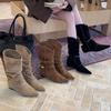 Botines de Gamuza de Punta Estilo Occidental Nuevo Otoño/Invierno 2025 para Mujer con Plataforma y Cordones Botas de Moda Apiladas Fruncidas para Mujer