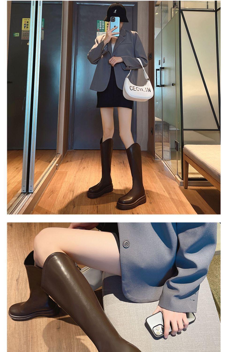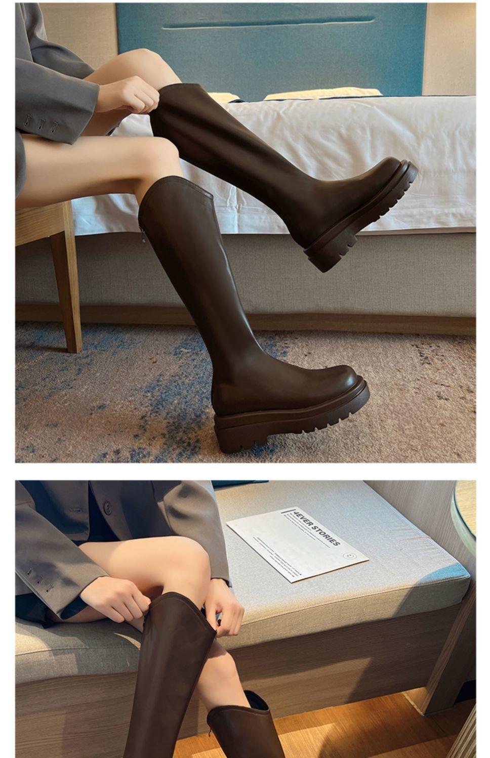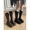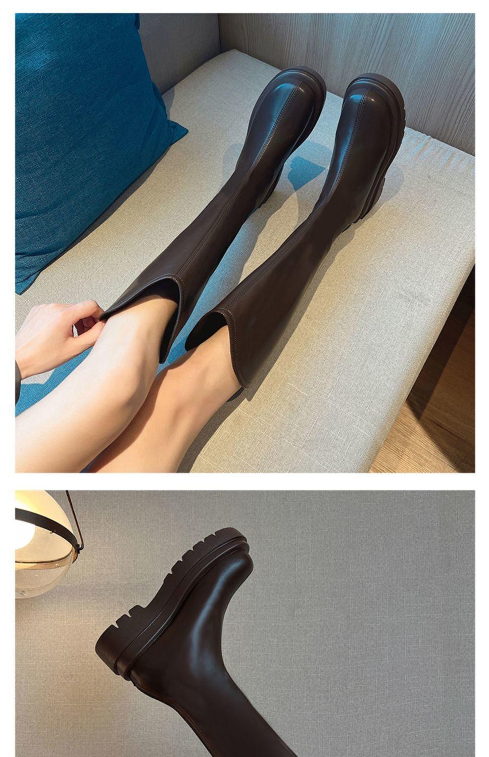 Botas altas hasta el muslo con boca en V para mujer 2025 otoño nuevo estilo coreano suela gruesa adelgazantes botas altas botas de caballero altas ins