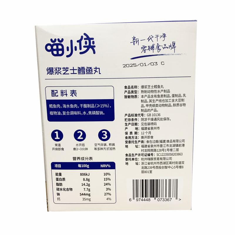Meow Xiao Xia bolitas de bacalao y queso frito queso fragante sabor a pescado fresco bolitas de pescado instantáneas 120g