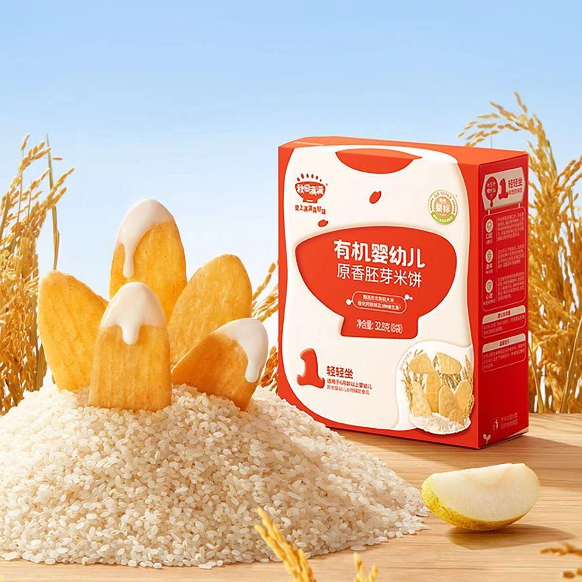 Pastel de Arroz Germen de Arroz Orgánico para Bebé Akita Sabor Original Pastel de Arroz con Frambuesa Ralo Sin Sal
