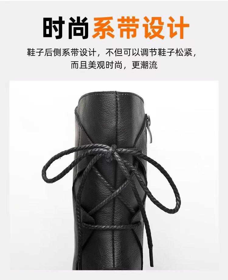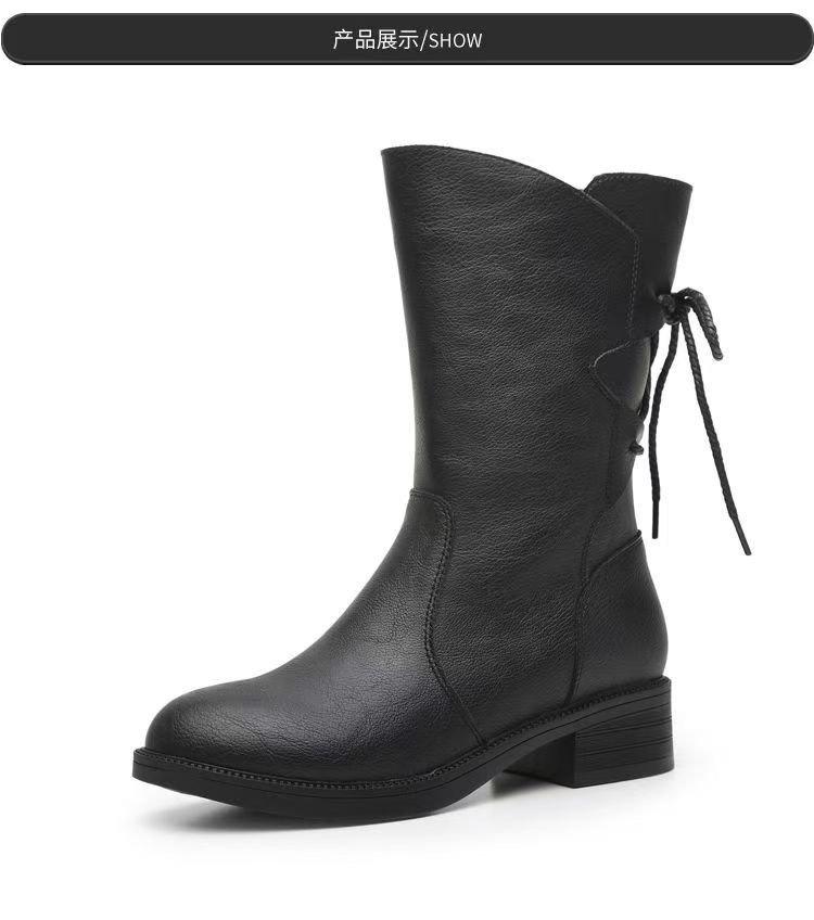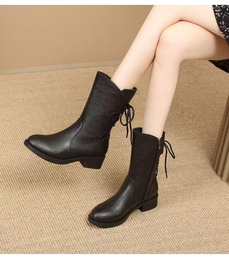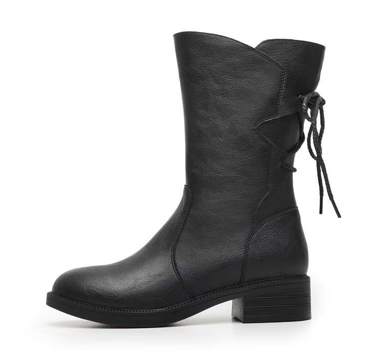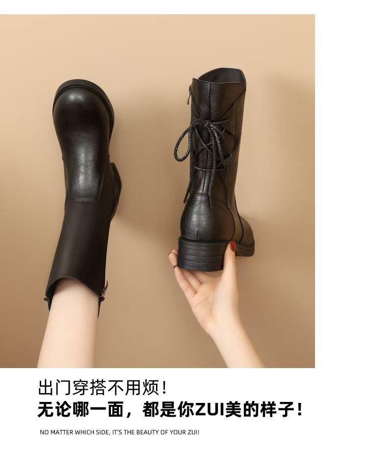 Botas Martin de Cuero Suave Espesado Botas de Media Caña Estilo Botín para Mujer 2025 Otoño/Invierno Nuevo Más Terciopelo Cálido Tacón Medio Tacón Grueso Zapatos de Algodón para Dama