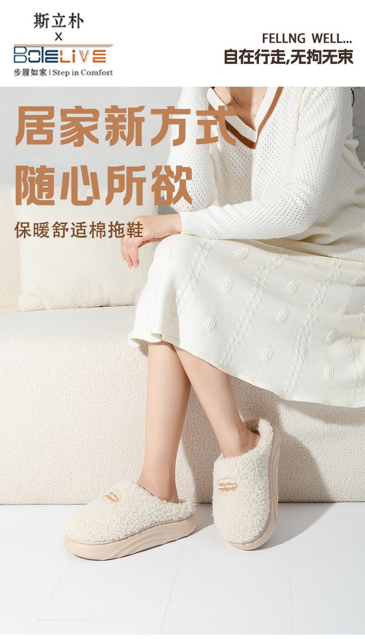 Pantuflas de Algodón Mujer 2025 Nuevo Otoño e Invierno Interior Hogar Antideslizantes Silenciosas Felpa Cálidas Hogar Pantuflas Peludas Mujer