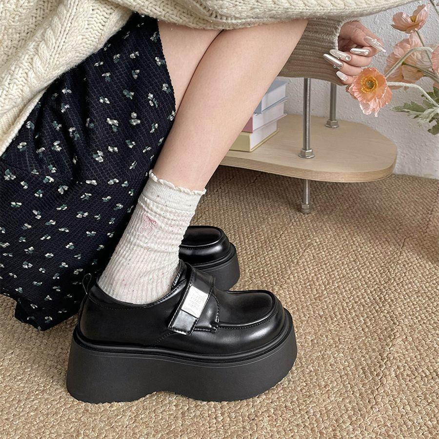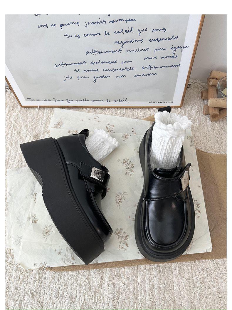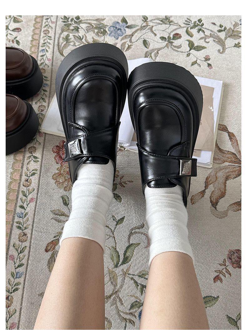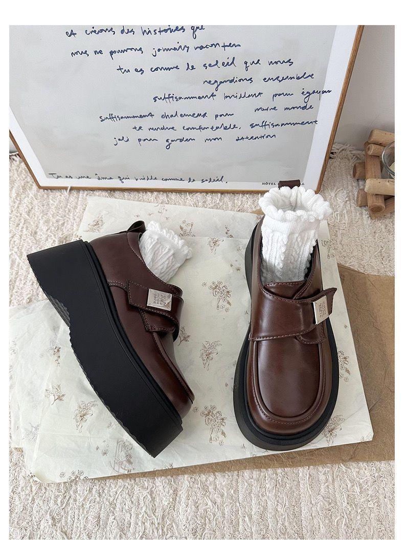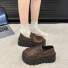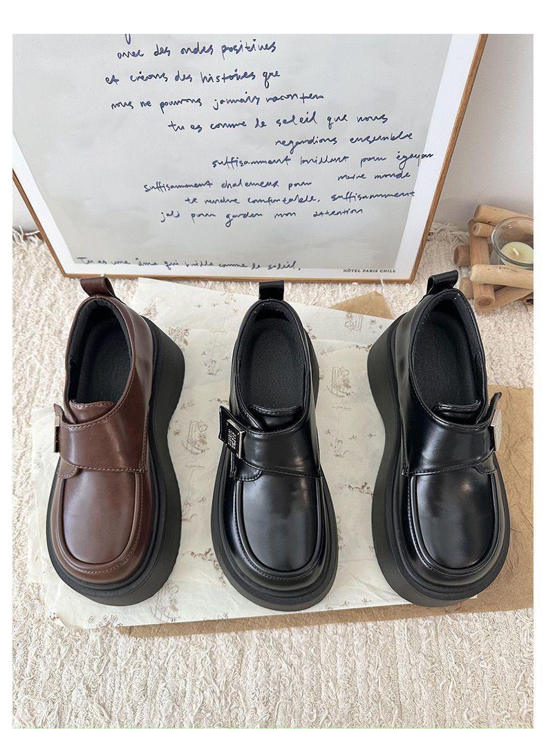 Zapatos de Cuero Pequeños Retro Simples de Moda 2025 Verano Nuevo Versátil para Mujer Petite Plataforma Mocasines de Suela Gruesa