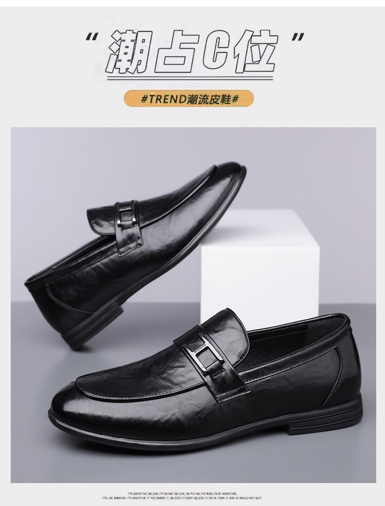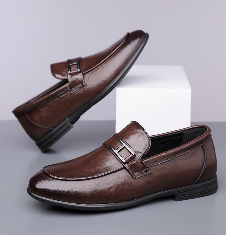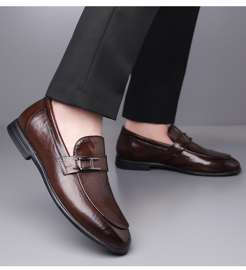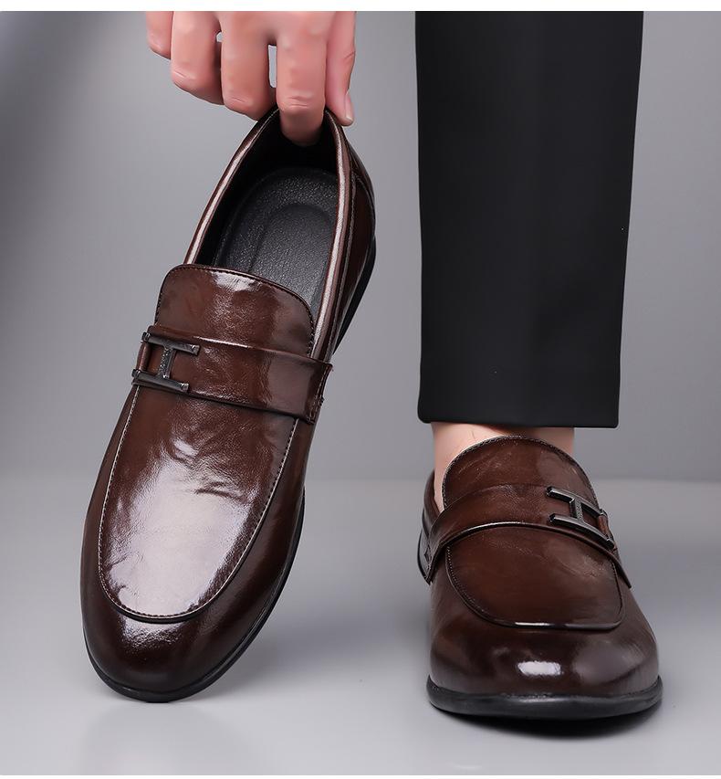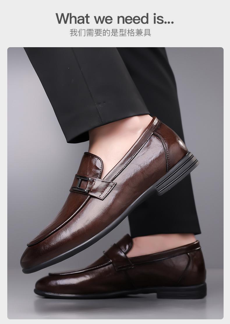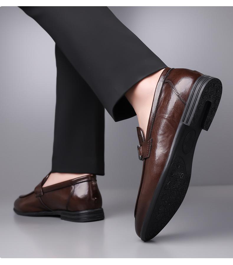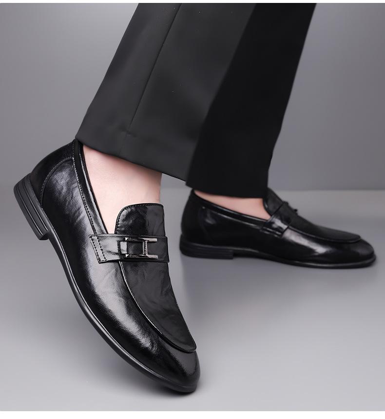 Envío directo transfronterizo otoño 2025 nuevos zapatos de cuero casuales de negocios para hombre zapatos de cuero de suela blanda para hombre cosidos a mano sin cordones