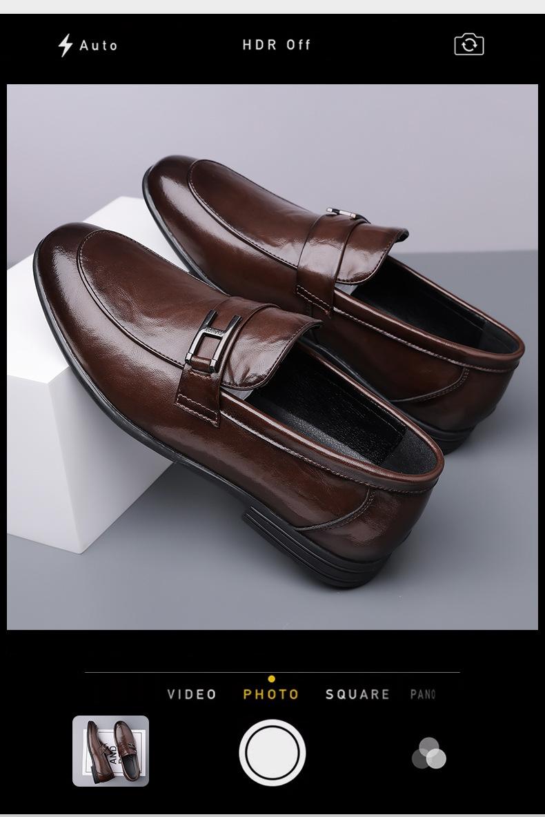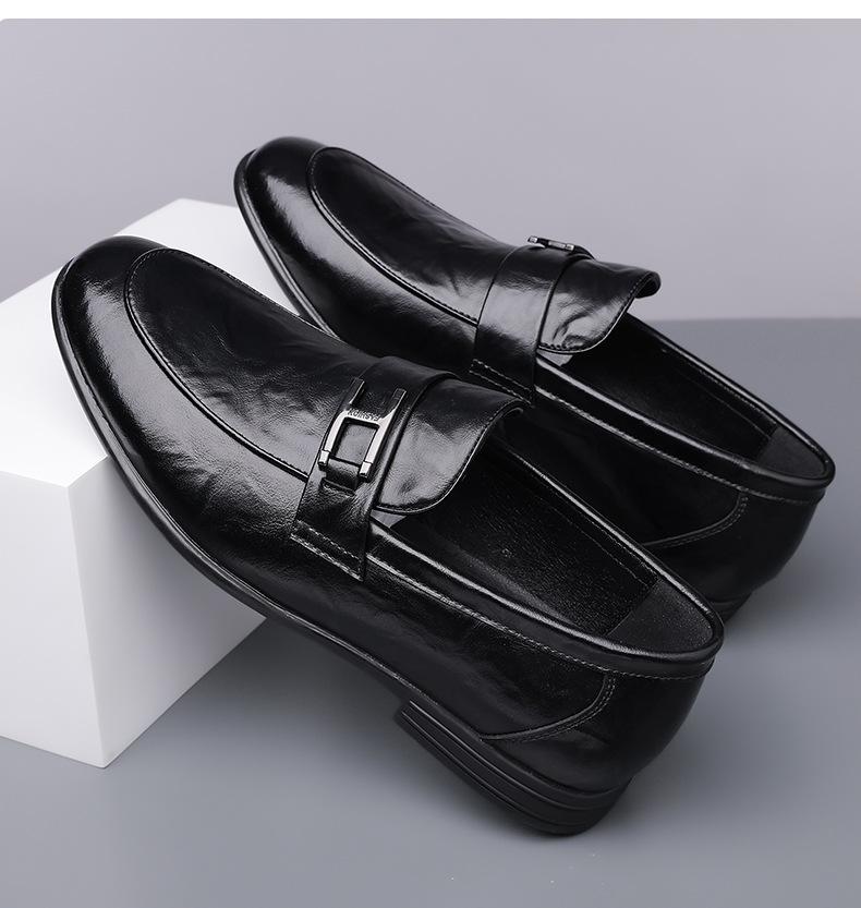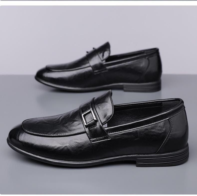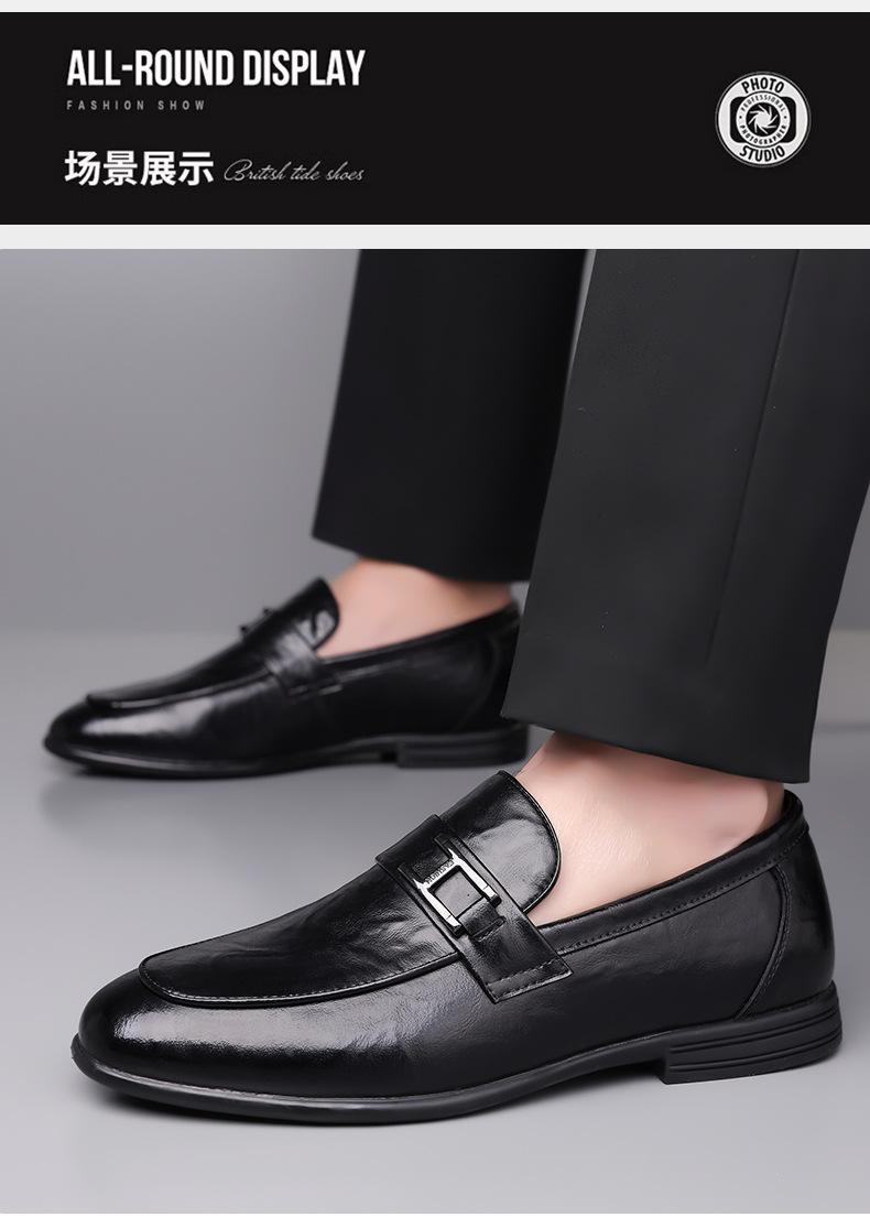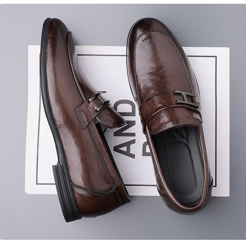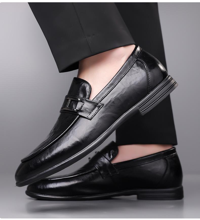 Envío directo transfronterizo otoño 2025 nuevos zapatos de cuero casuales de negocios para hombre zapatos de cuero de suela blanda para hombre cosidos a mano sin cordones