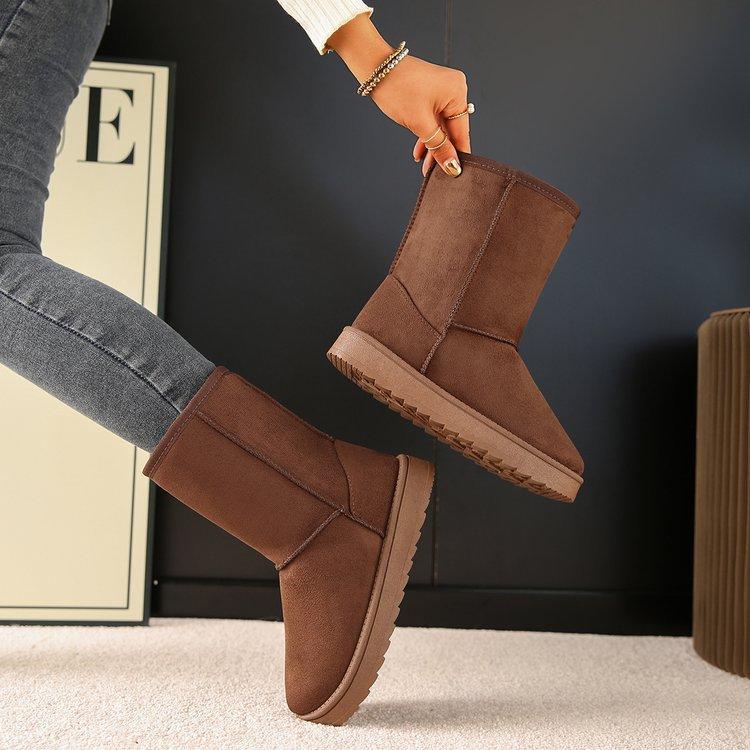 Botas de Nieve Europeas y Americanas de Talla Grande 2024 para Mujer Invierno Forradas de Lana Espesadas de Caña Alta Versátiles Cálidas Botas de Algodón Zapatos de Algodón Venta al por Mayor Transfronteriza