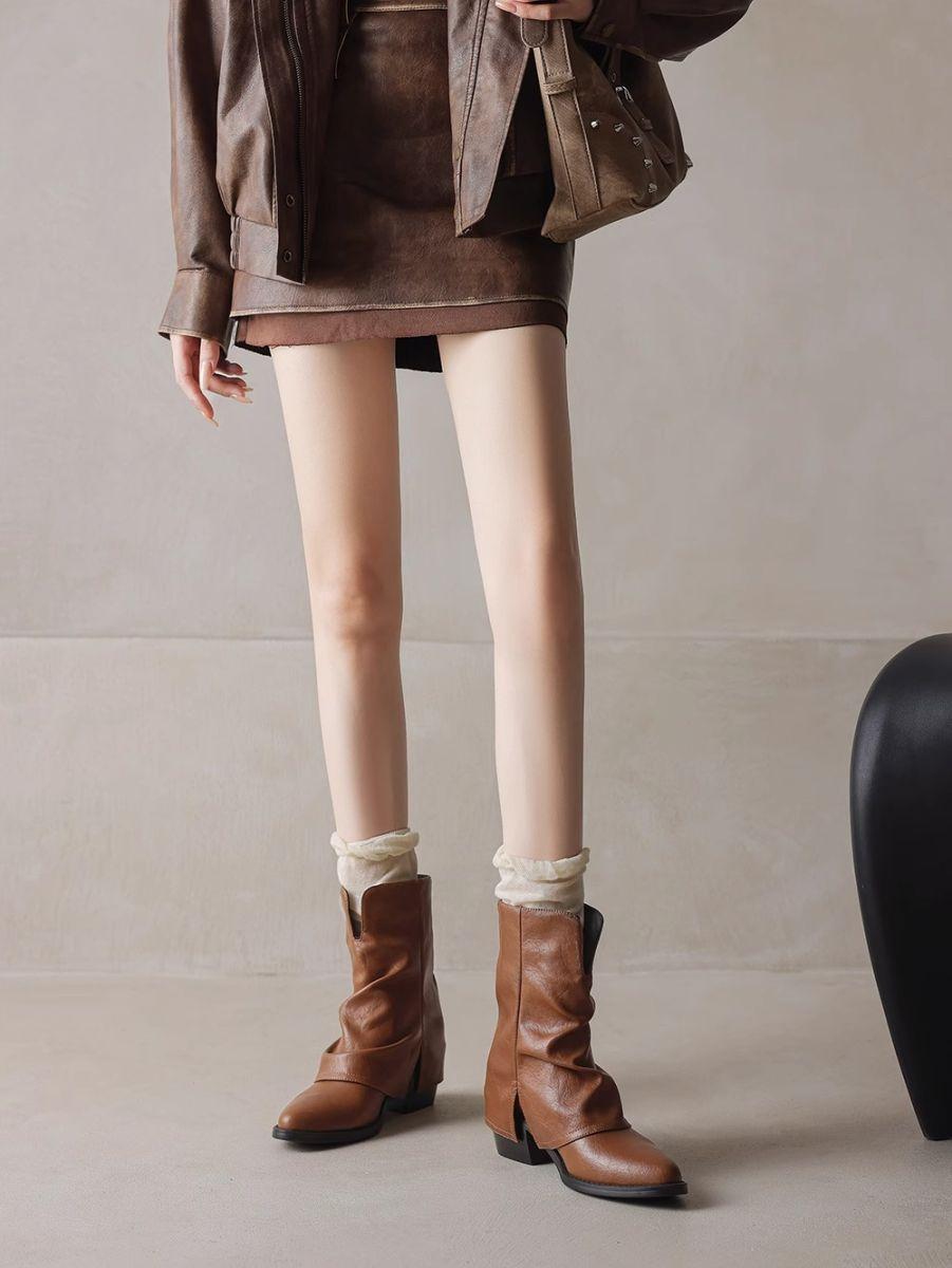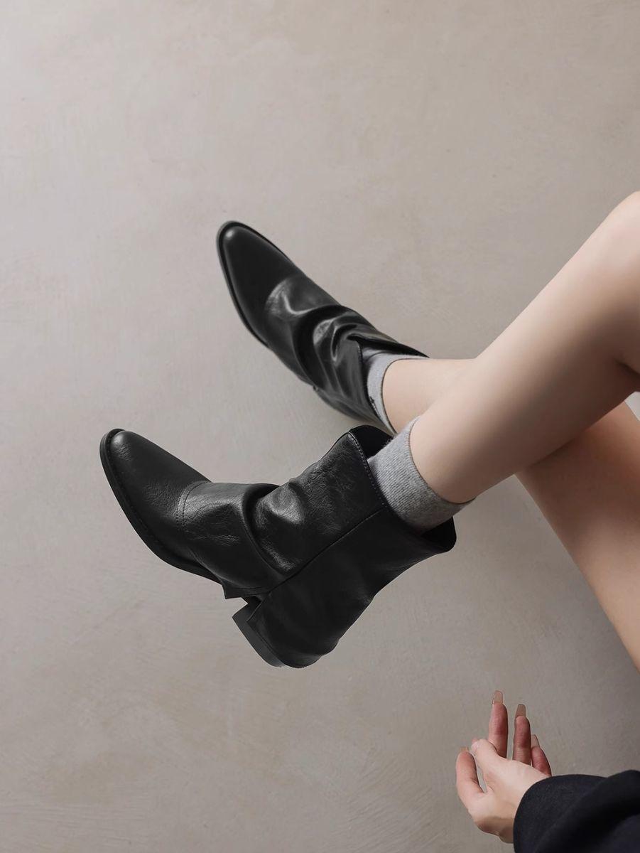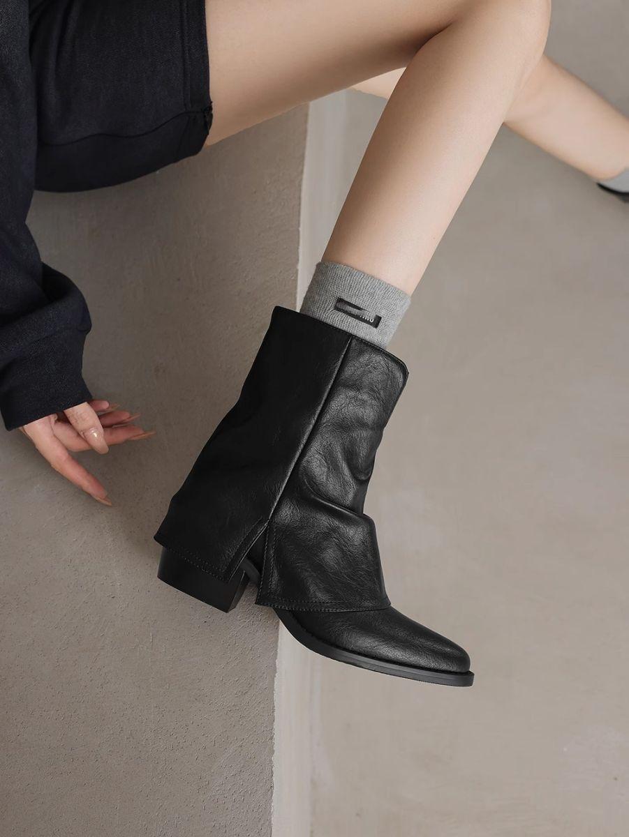 Otoño/Invierno 2025 Nuevos Botines Occidentales de Tacón Alto Fino con Punta Afilada Botines al Tobillo Botas para Pierna de Pantalón Tacón Grueso Botas Martin