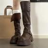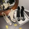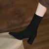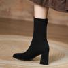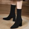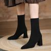 Botines cortos mate de piel con tacón grueso para mujer 2023 otoño e invierno nuevo estilo adelgazantes botas elásticas realzadoras de altura para persona pequeña botas ajustadas