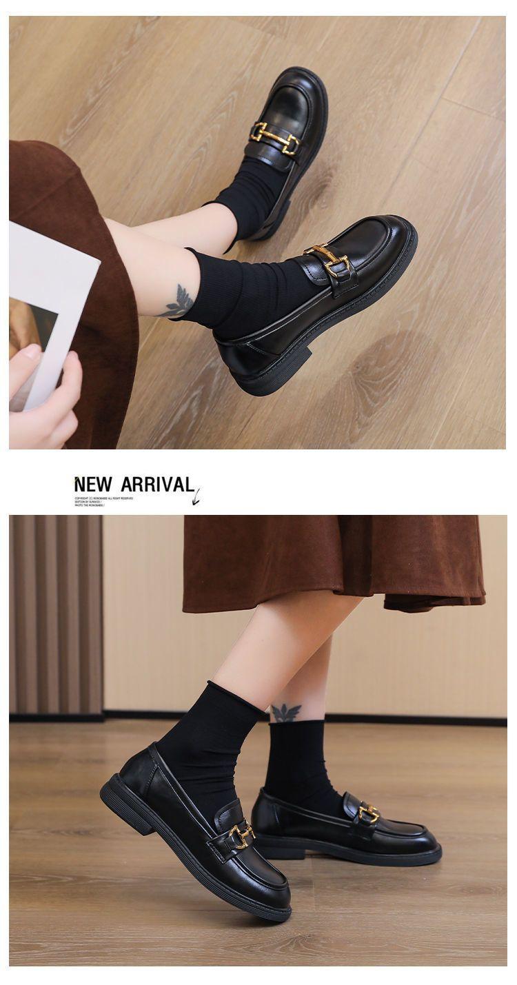 Cuero Genuino Suela Suave Estilo Británico Zapatos de Trabajo Zapatos Pequeños de Cuero 2025 Zapatos Nuevos para Mujer Punta Redonda Zapatos Individuales Mocasines Negros para Mujer