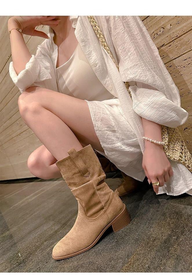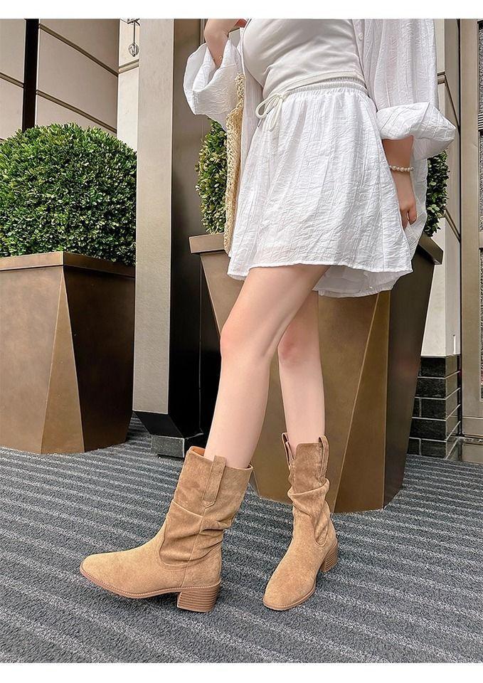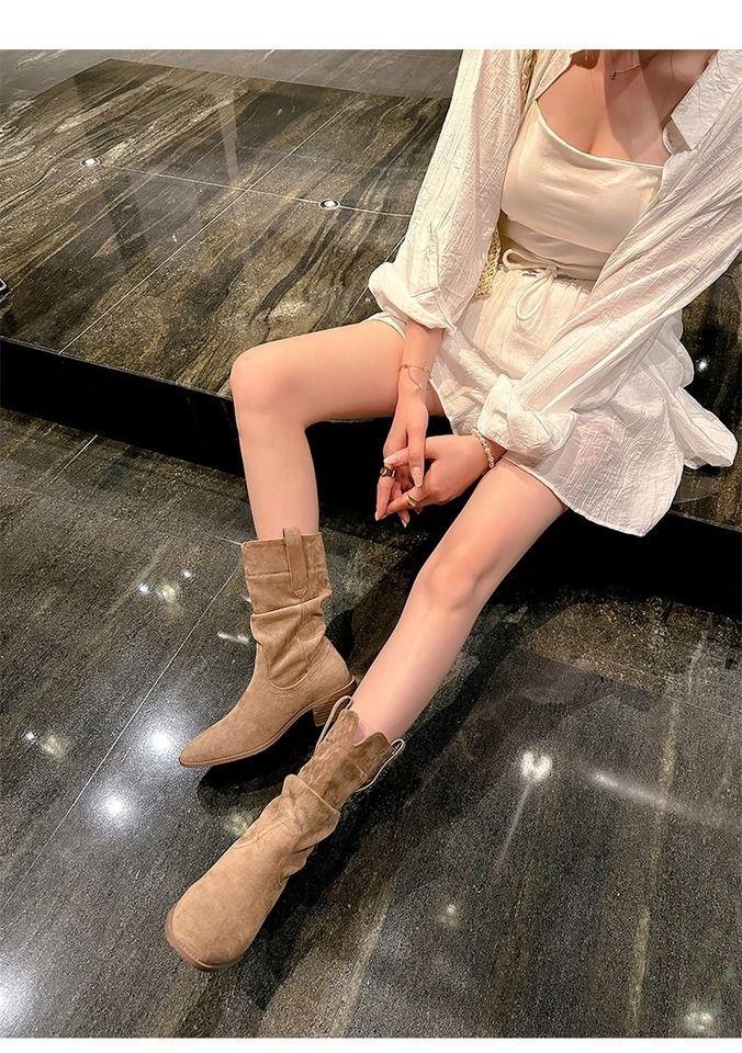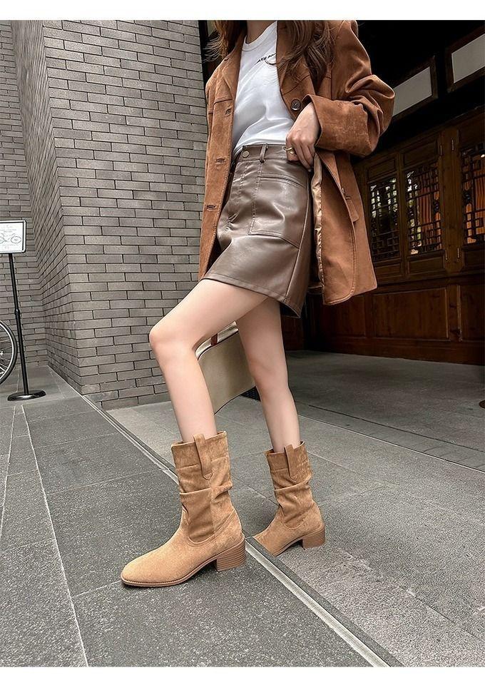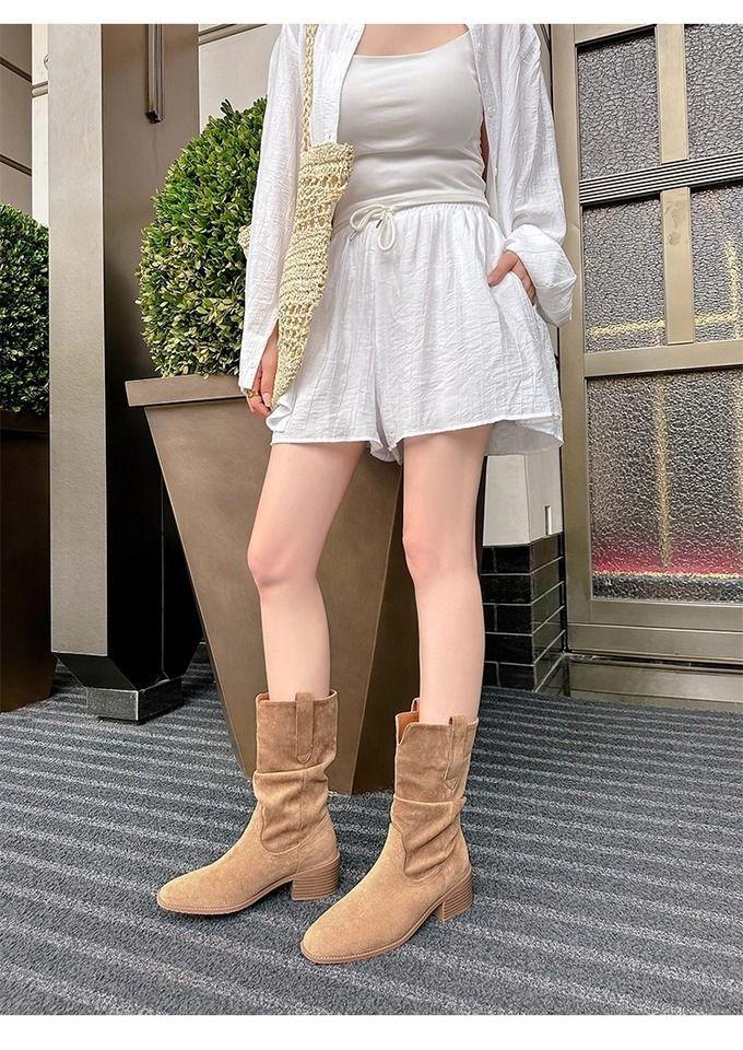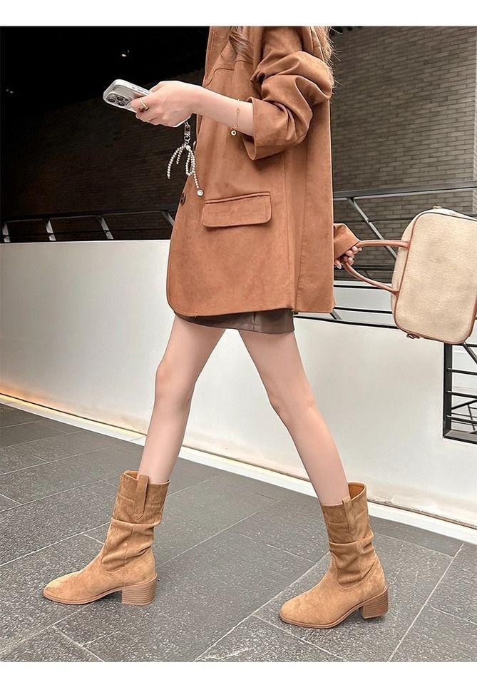 Botas Martin mujer 2025 nuevo otoño retro adelgazantes versátiles tacón alto botines vaqueras occidentales slouch boots