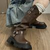 Botines de Tobillo de Cuero Suave con Tacón de Cuña para Mujer 2024 Invierno Nuevo Estilo Más Terciopelo Puño de Punto Botas de Media Caña Punta Redonda Casual Cálido Botas de Mujer
