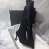 Botas largas simples coreanas de caña alta hasta la rodilla, botas elásticas, botas ajustadas esmeriladas para mujer, cremallera lateral, punta puntiaguda, botas de moda de tacón alto