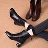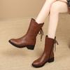 Botas Martin de Cuero Suave Espesadas Nuevo Estilo Botas Media Caña Mujer 2025 Otoño/Invierno Forradas de Lana Cálidas Tacón Medio Tacón Grueso Zapatos de Algodón para Dama