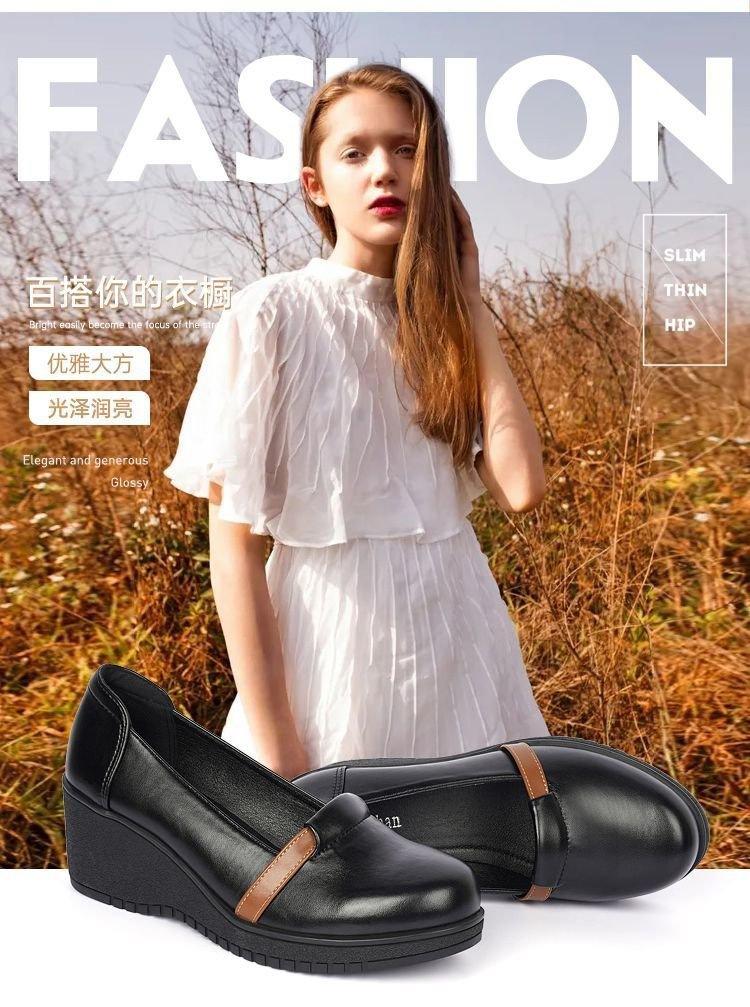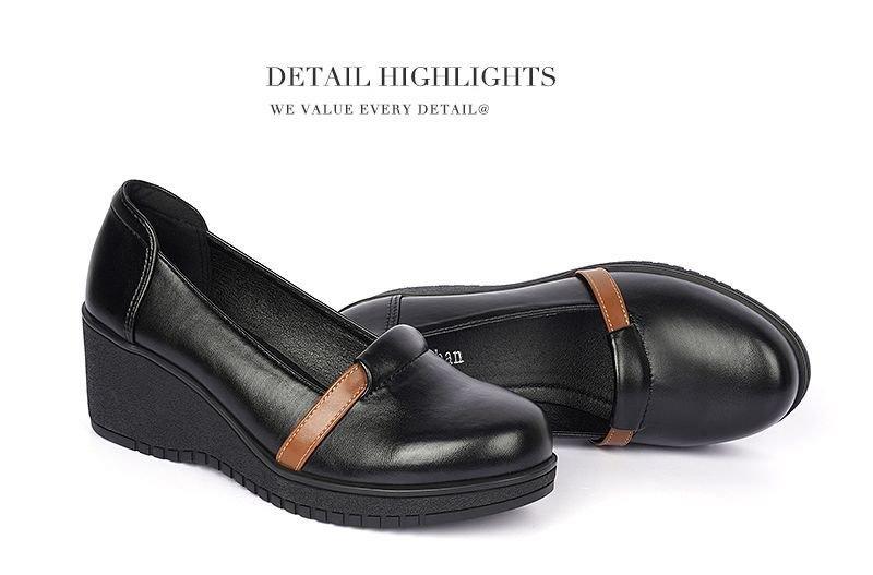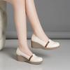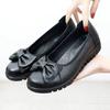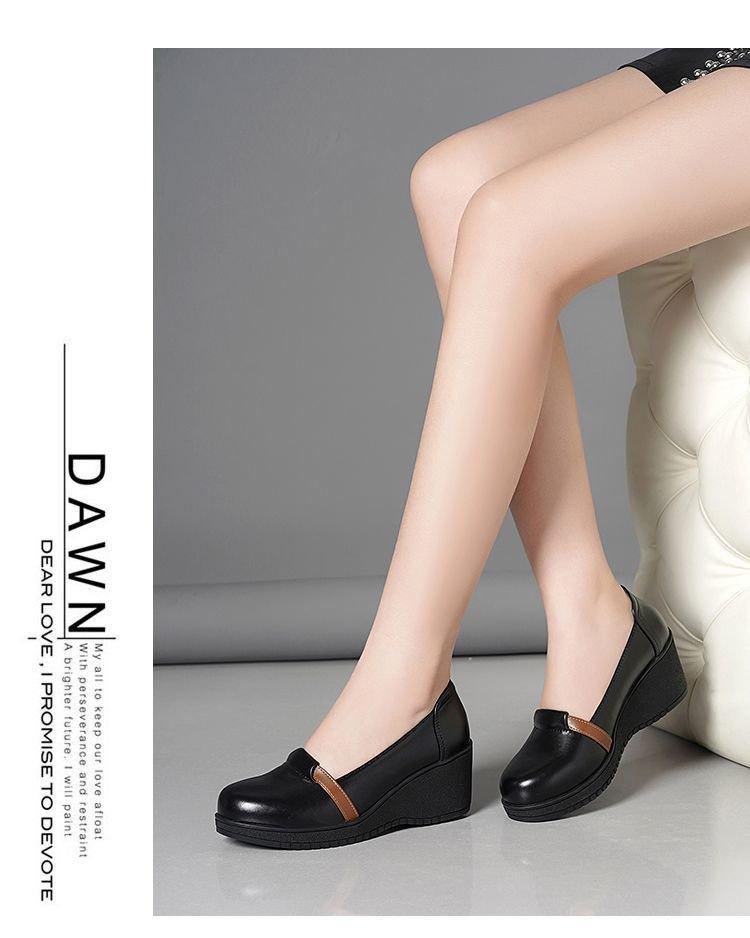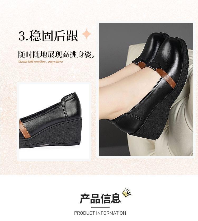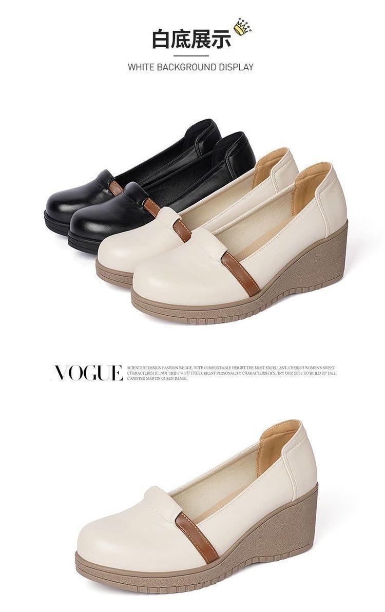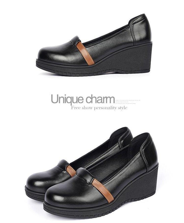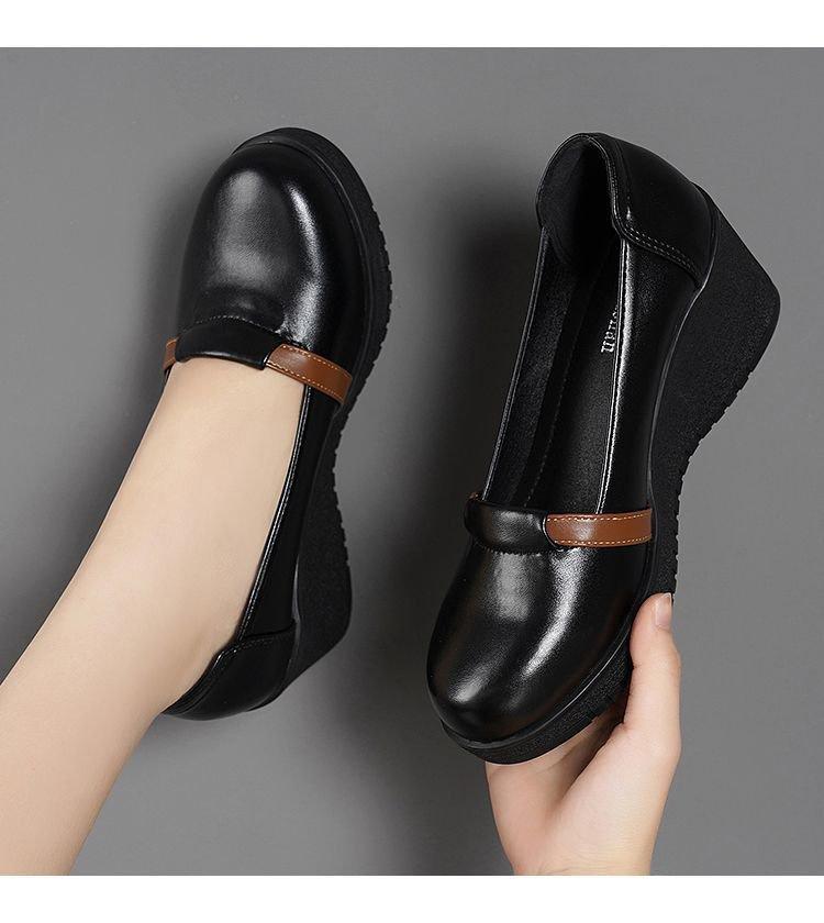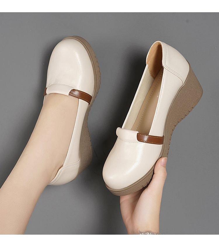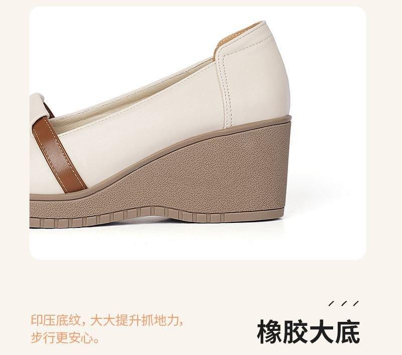 Zapatos de cuero pequeños de punta redonda de boca baja para mujer otoño 2025 nuevos zapatos de trabajo cómodos de meter suela suave versátiles tacón de cuña zapatos individuales