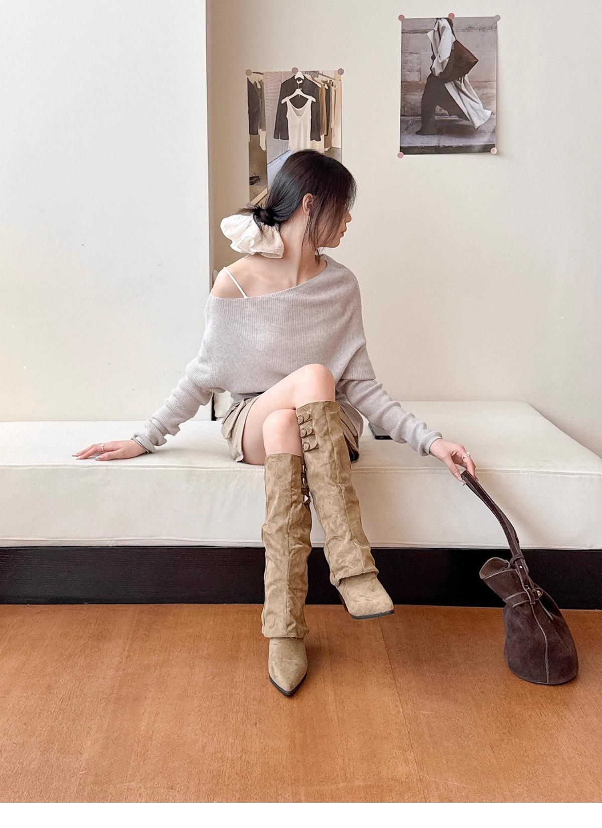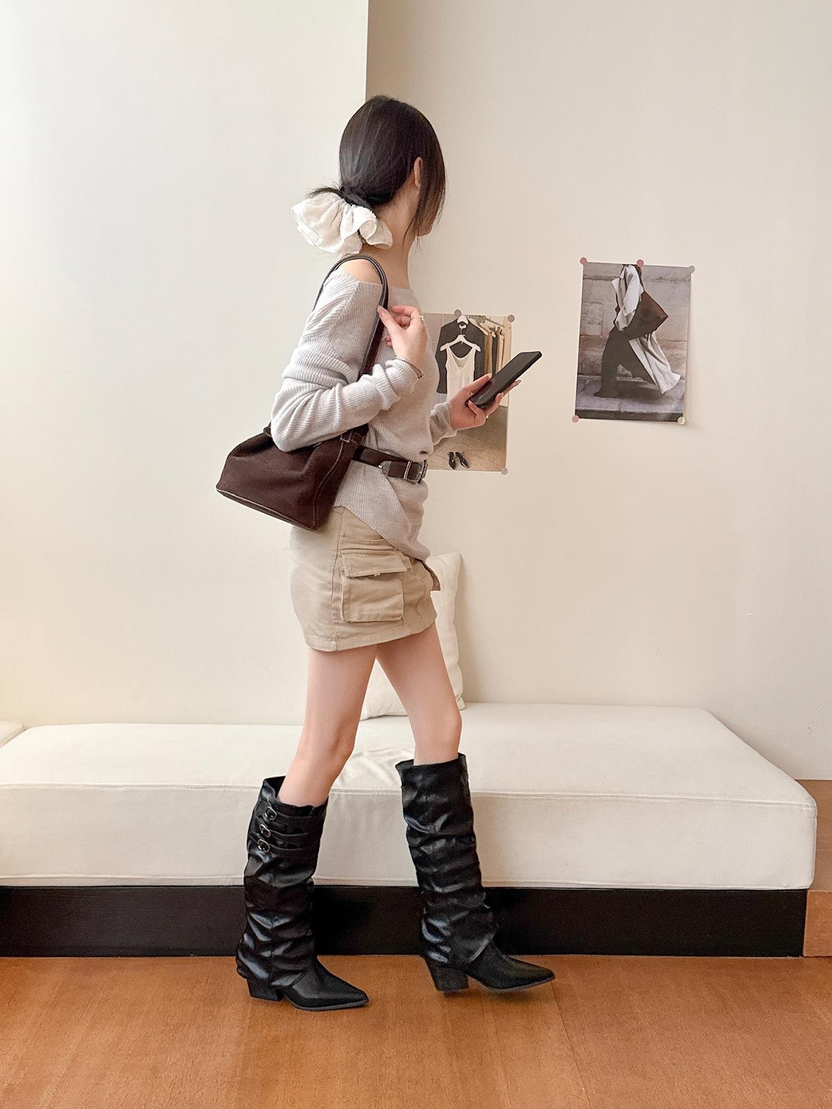 ¡Un zapato, dos formas de usar! Botas altas hasta el muslo de otoño con punta afilada y tacón grueso para mujer, botas largas adelgazantes de otoño