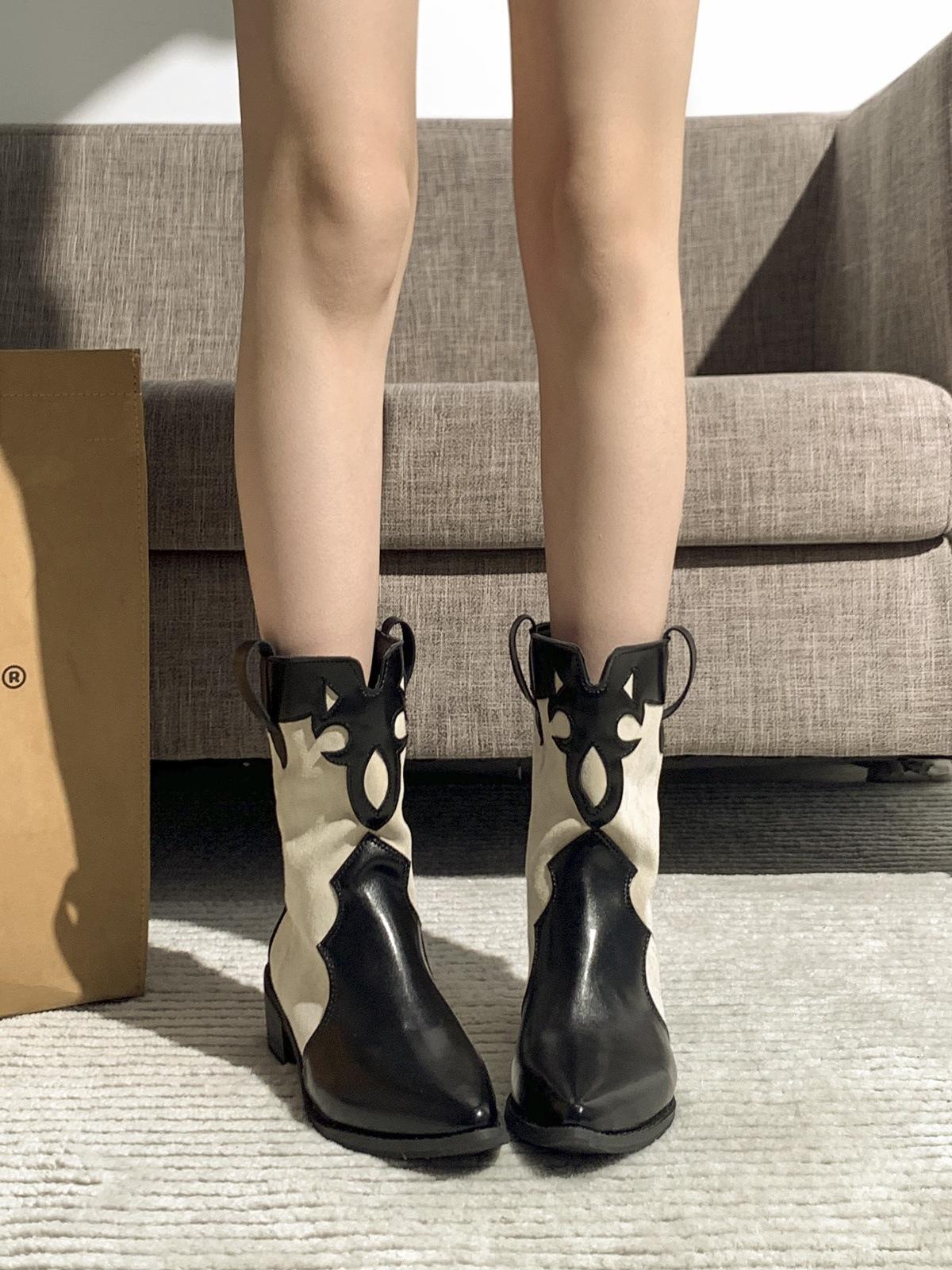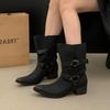 Botas Martin Británicas de Venta Caliente 2025 Nuevas Botas de Otoño Moda Femenina Versátil Retro Punta Afilada Botas Vaqueras Occidentales de Mujer