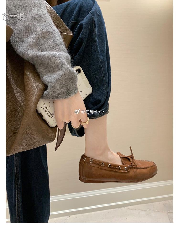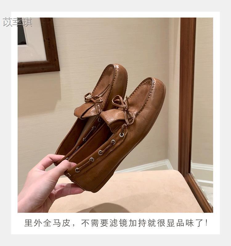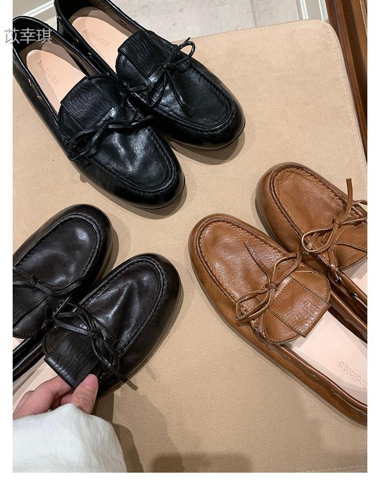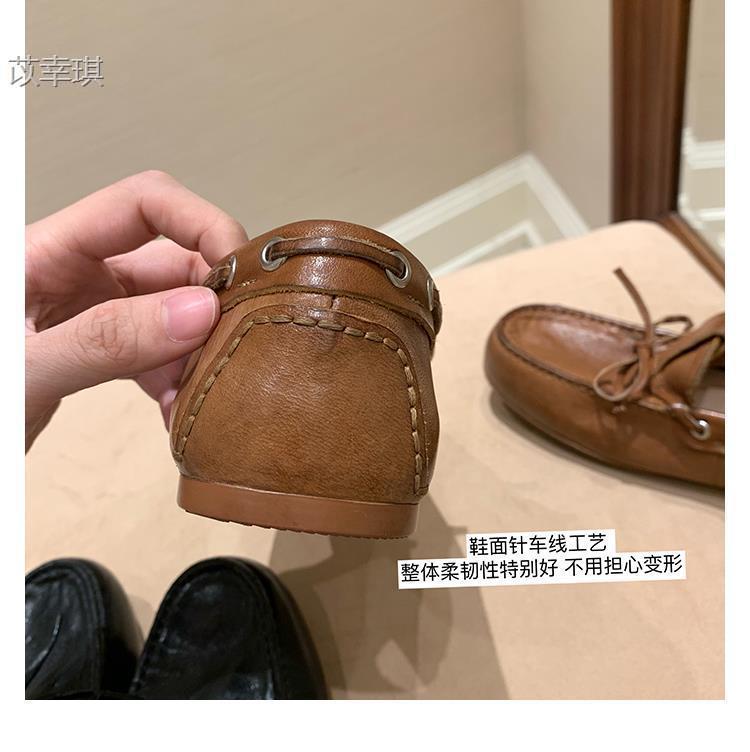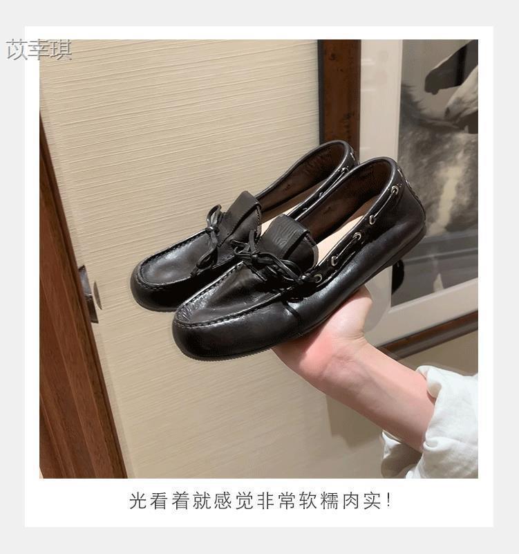 Versión de piel de oveja~Nuevos mocasines planos retro con cordones de lazo para mujer, estilo británico, slip-on versátiles de cuero pequeño
