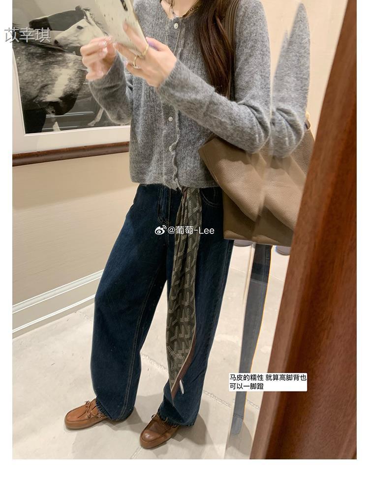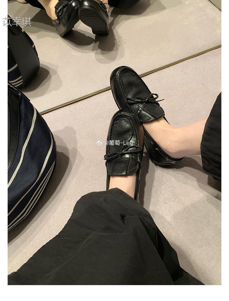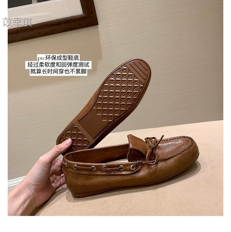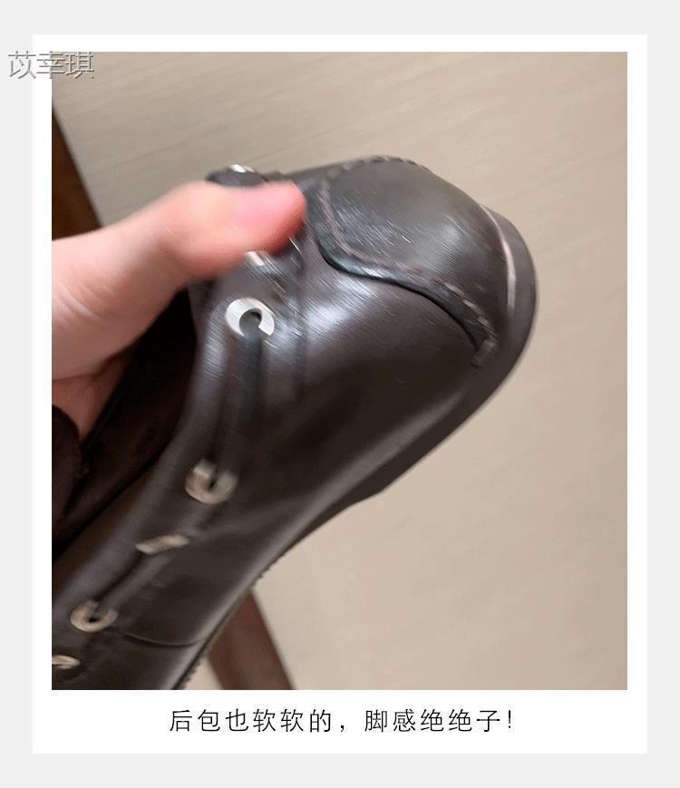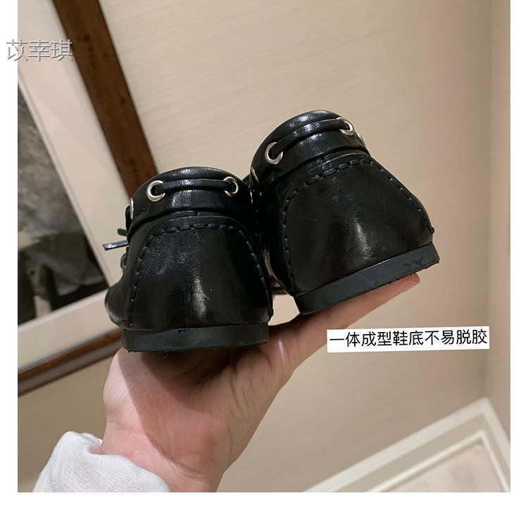 Versión de piel de oveja~Nuevos mocasines planos retro con cordones de lazo para mujer, estilo británico, slip-on versátiles de cuero pequeño