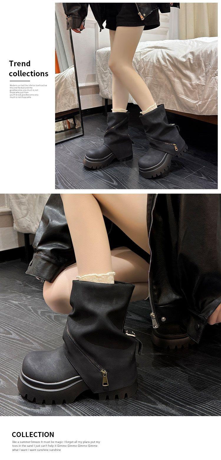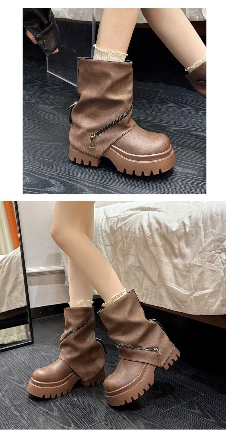 Botas versátiles de caña alta con suela gruesa para mujer, botines de temperamento de moda nueva de otoño 2025, botas de moda