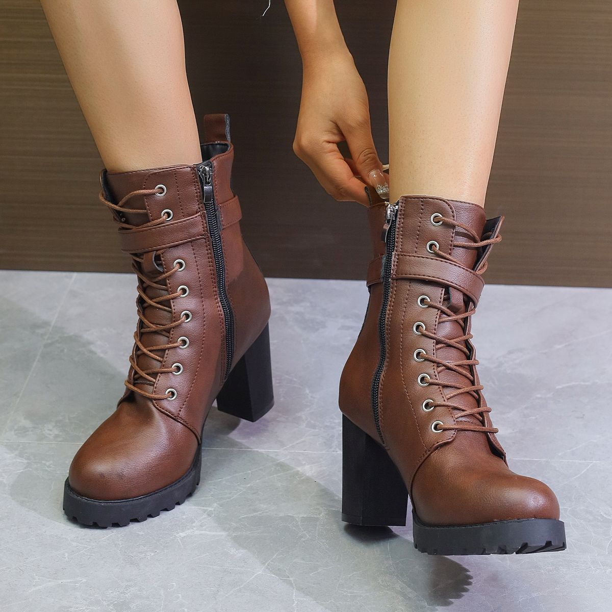Botas casuales de media caña para mujer 2025 otoño e invierno nueva moda versátil cómodas tacón grueso cremallera lateral botas Martin estilo mujer