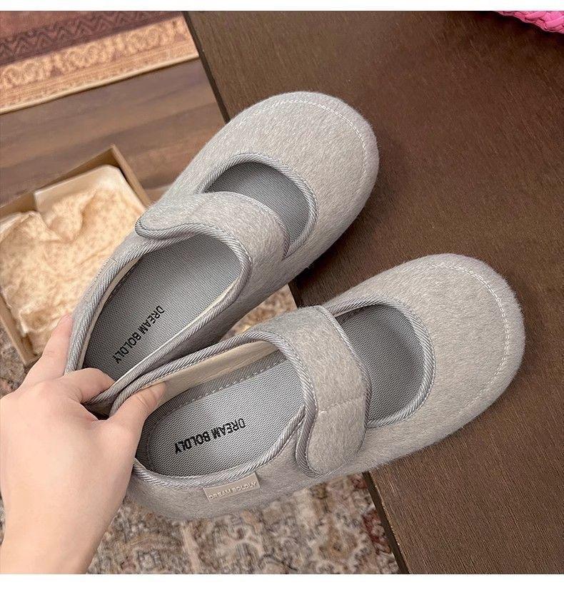 Zapatos Lazy Retro de Una Correa No Cansados Punta Redonda Moda Versátil Mocasines Pie Gamuza Suela Plana 2024 Suela Suave Nuevo