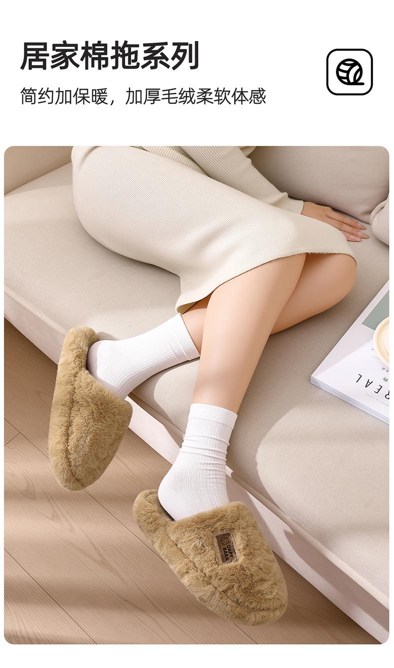 Pantuflas de Algodón Peludas para Mujer Invierno Otoño Hogar Antideslizantes Hogar Interior de Alta Gama Cálidas Felpa Suela Gruesa Pantuflas de Algodón para Hombre al Mayoreo