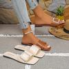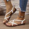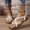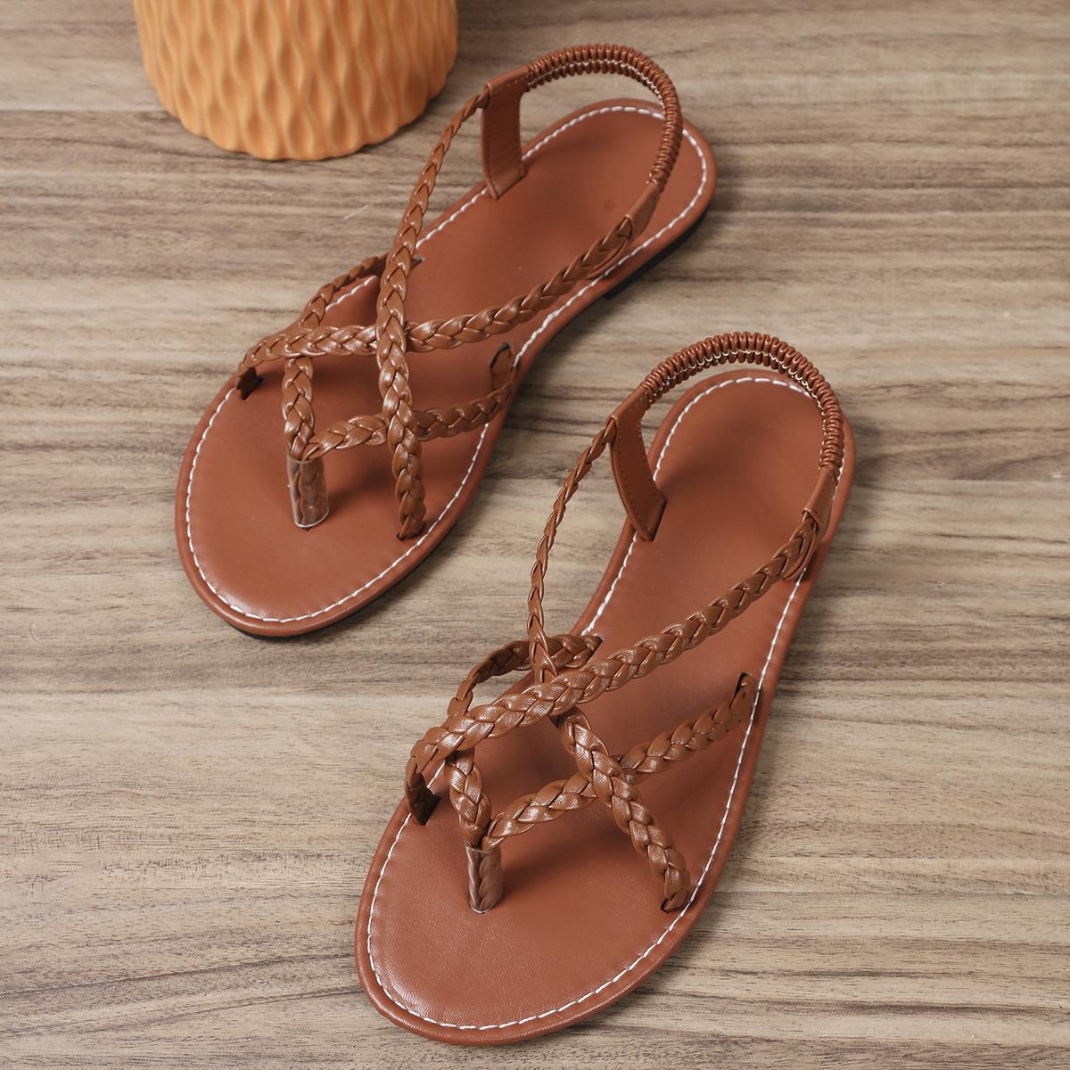 Sandalias planas casuales tipo tanga de comercio exterior para mujer 2025 Nuevo estilo Tejidas Slip-On Romanas Zapatos de playa Talla grande