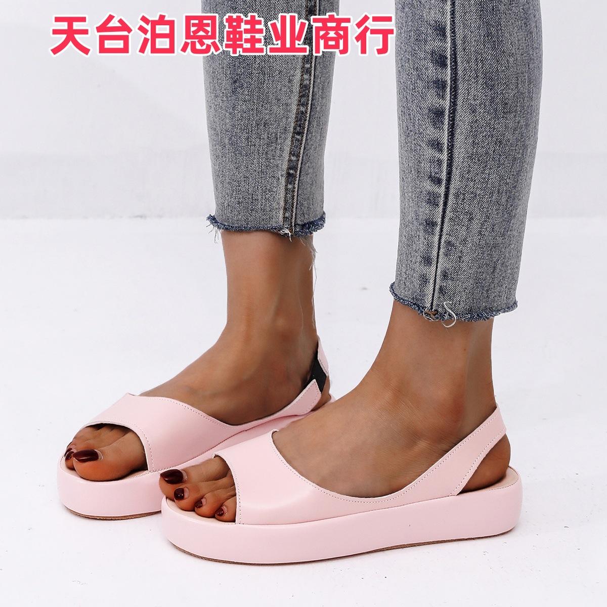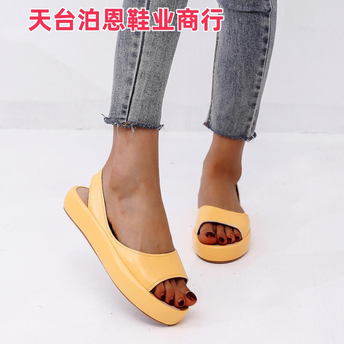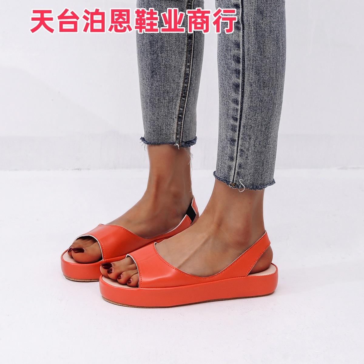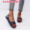 Sandalias de Mujer al por Mayor al Contado Transfronterizo de Comercio Exterior Verano Europeo y Americano Slip-On Nuevo Estilo Talla Grande Uso Exterior Sandalias Planas de Mujer