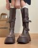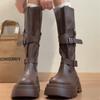 Botas altas hasta el muslo de suela gruesa para mujer 2025 nuevo otoño retro adelgazantes con hebilla de cinturón botas largas botas de montar