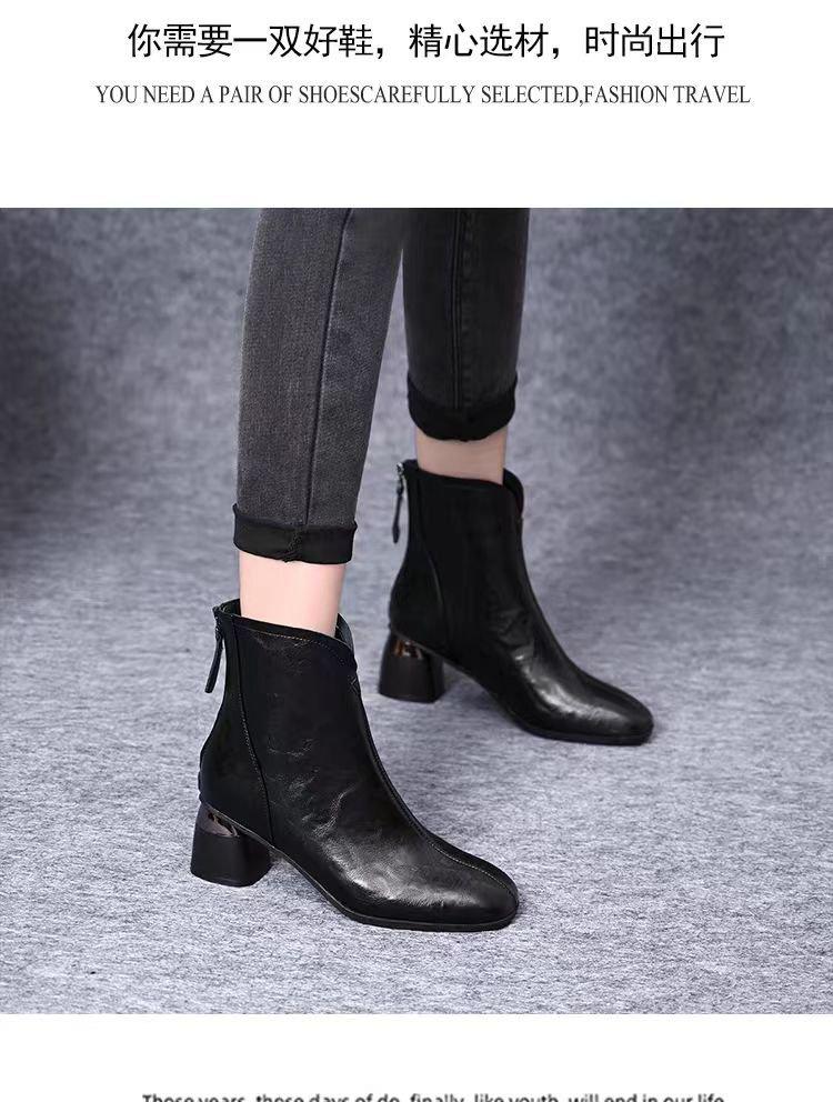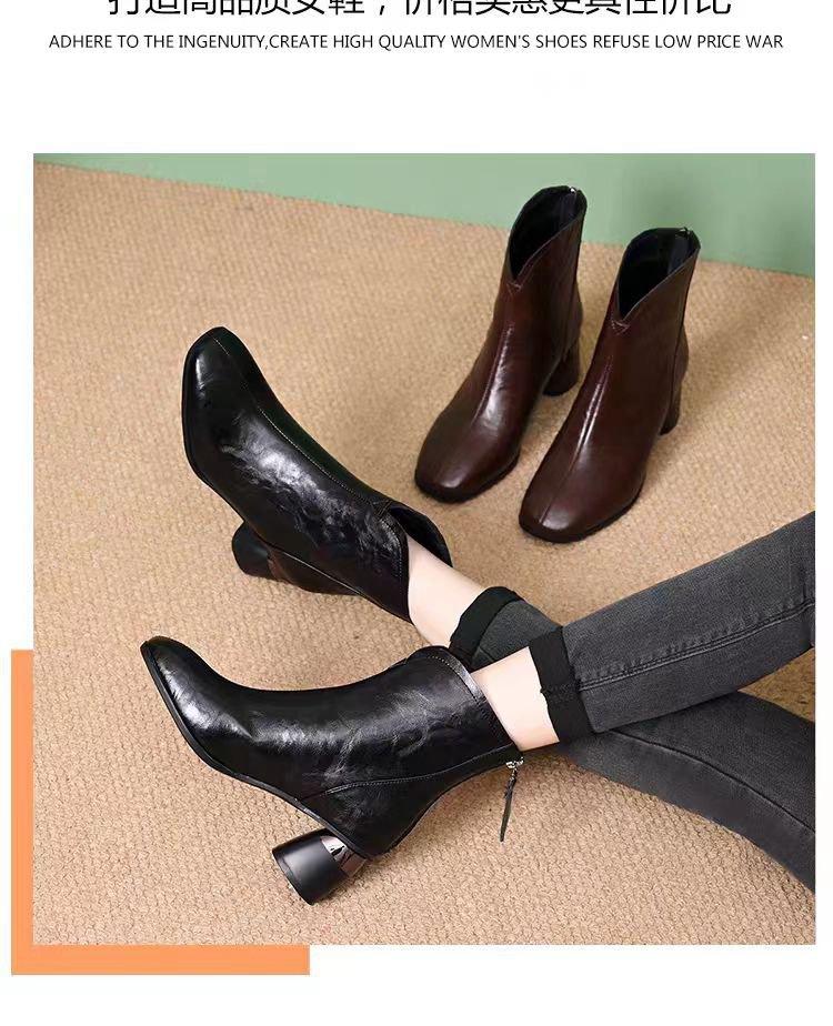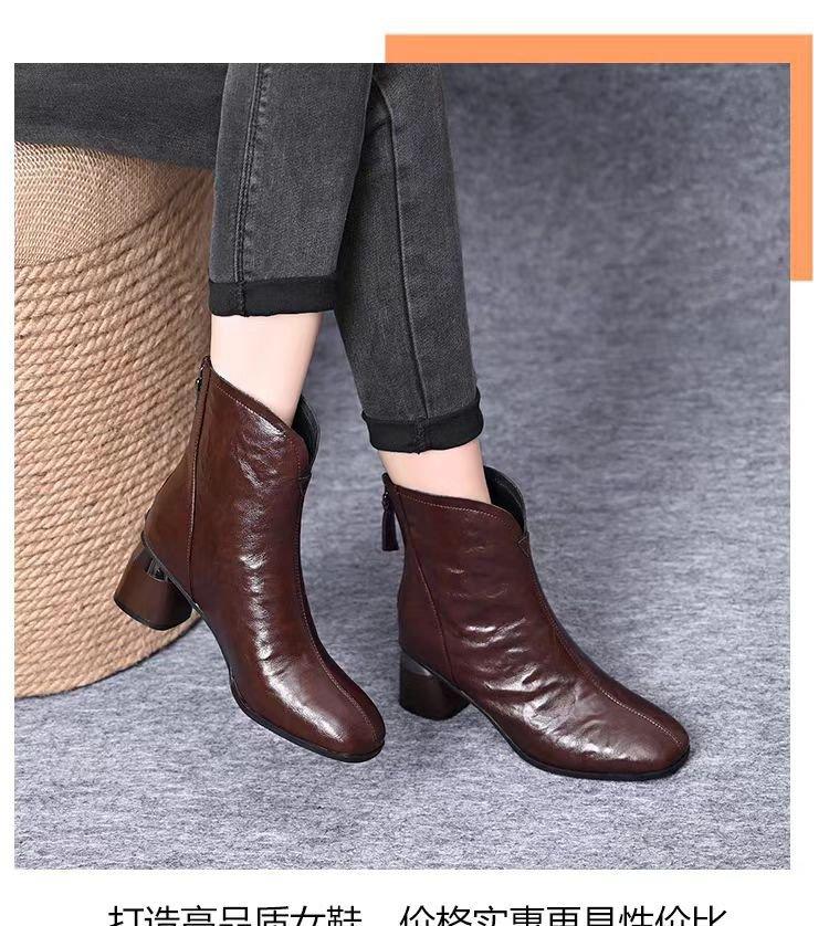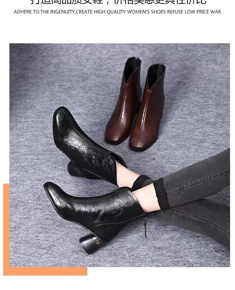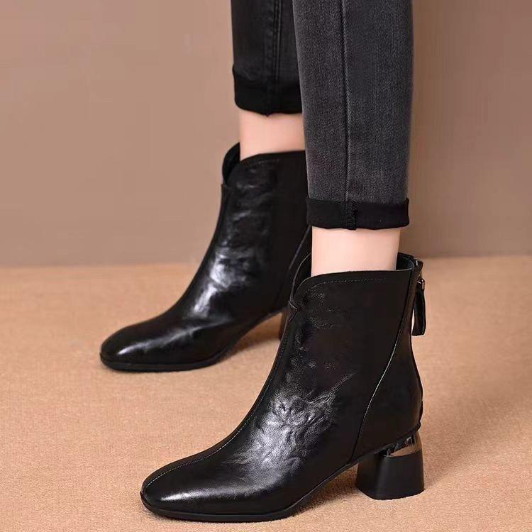 Temperamento Versátil Cuero Suave Tacón Chunky Media Caña Botas Martin Mujer 2025 Otoño/Invierno Nuevo Estilo Británico Cómodas Cálidas Botas de Algodón Único
