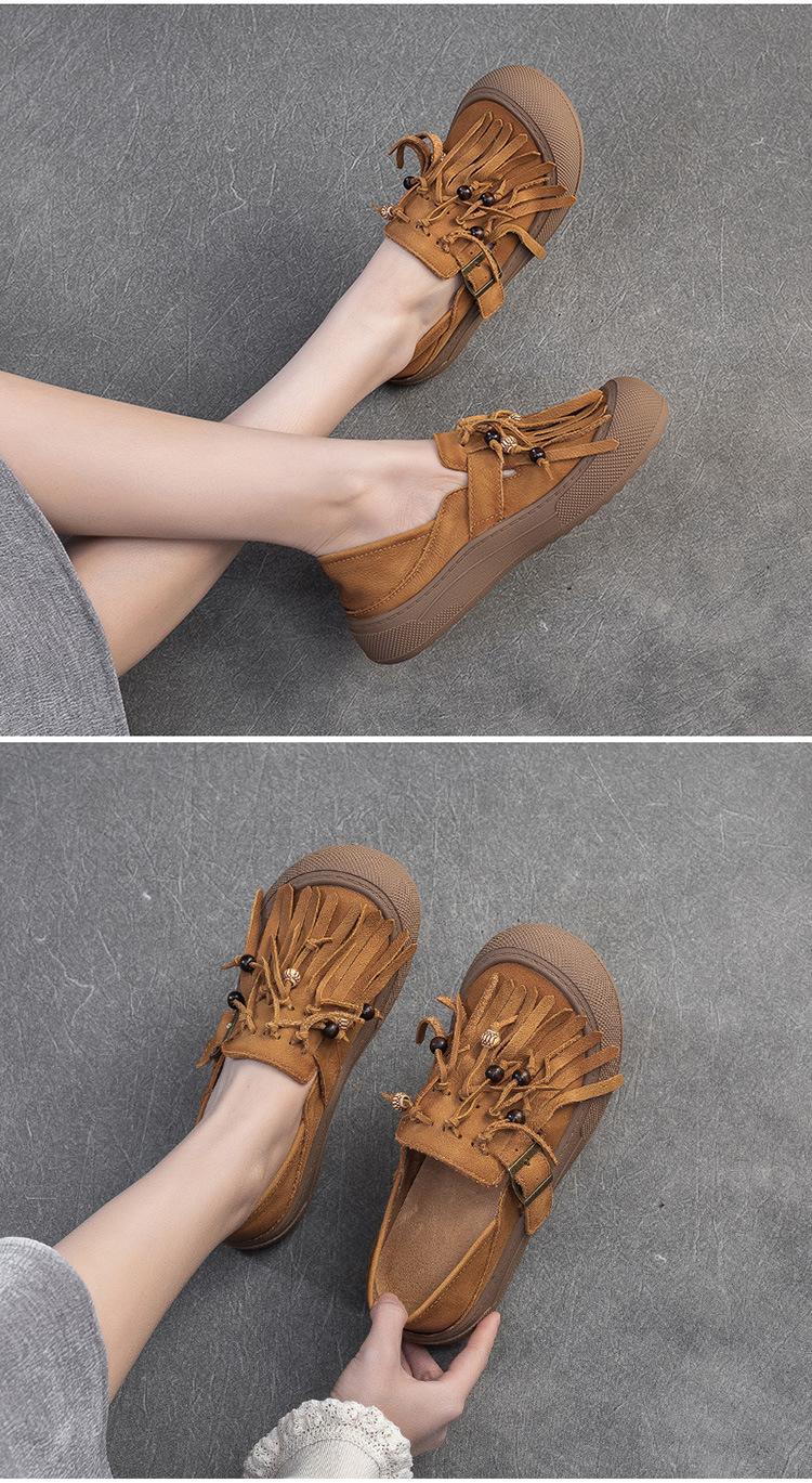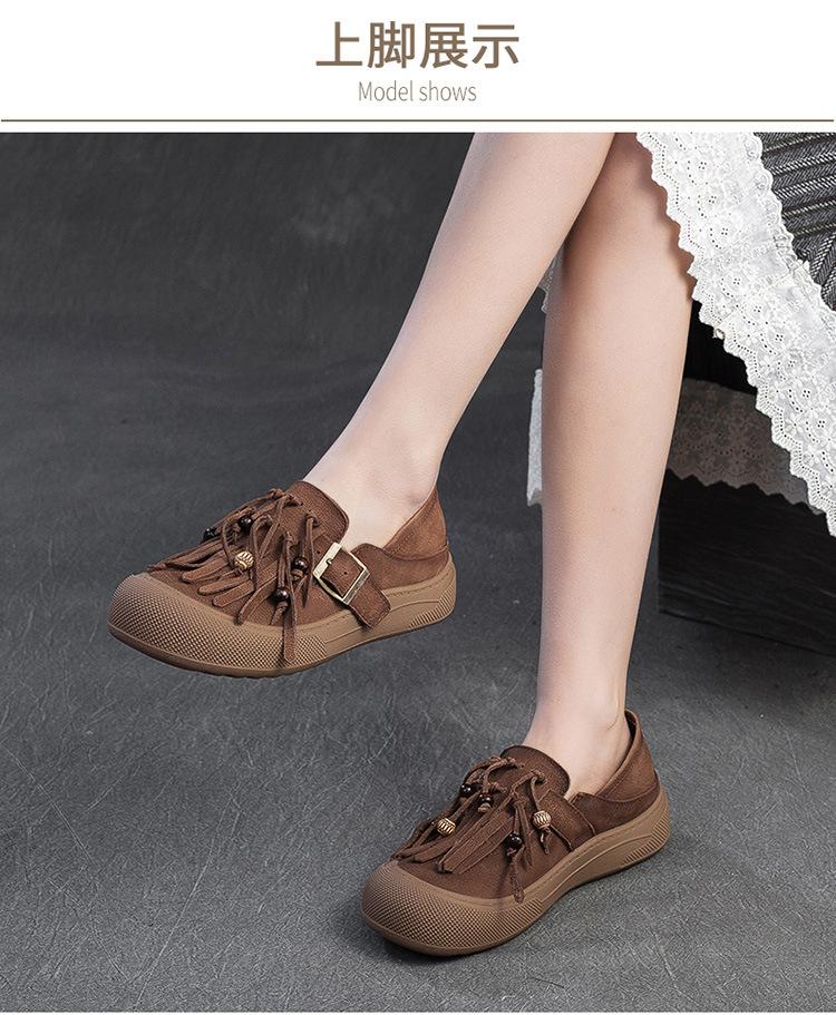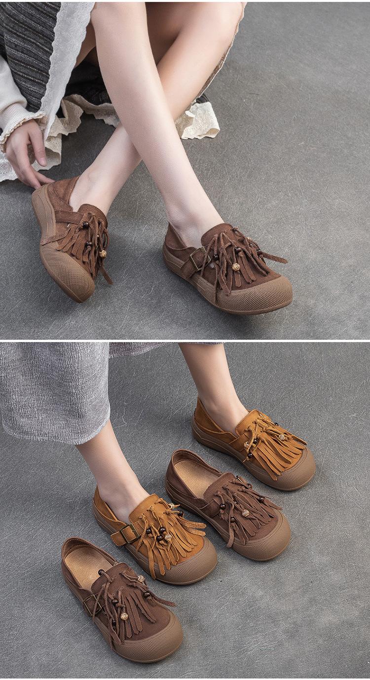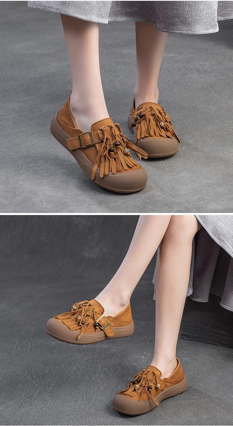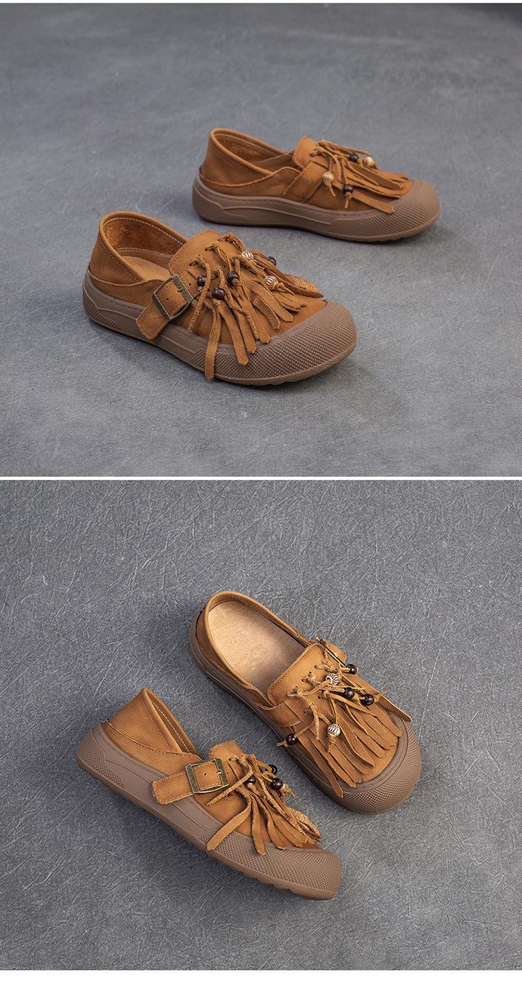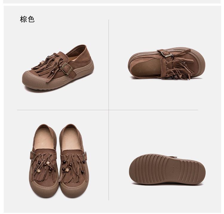 Jie Zhou Otoño 2025 Nuevo Diseño Retro Borla Zapatos Individuales de Mujer Color Sólido Perezoso de Un Paso Casual Moda Versátil