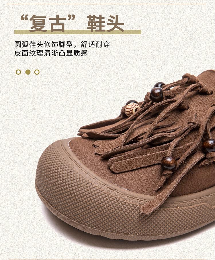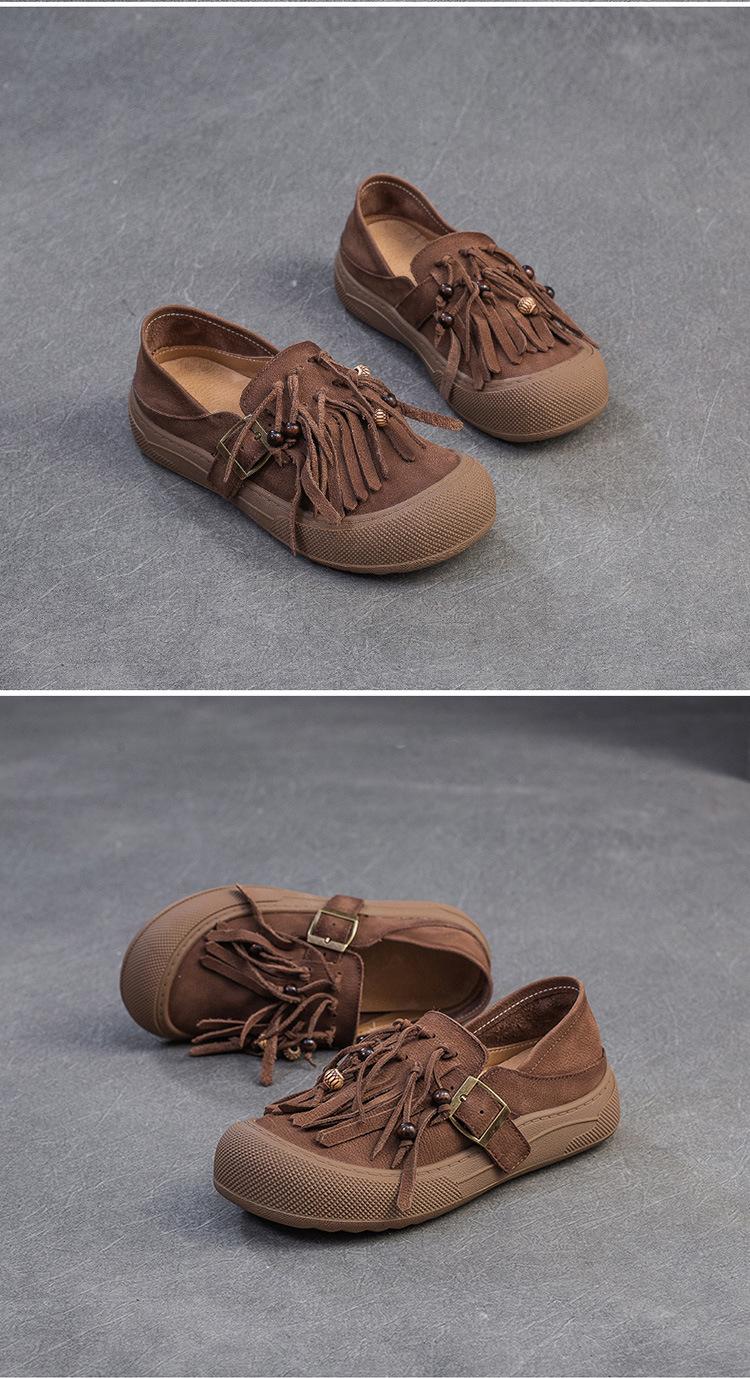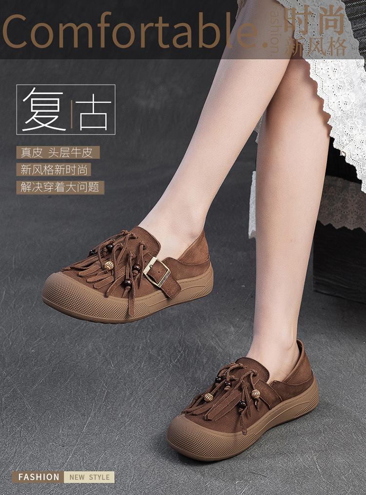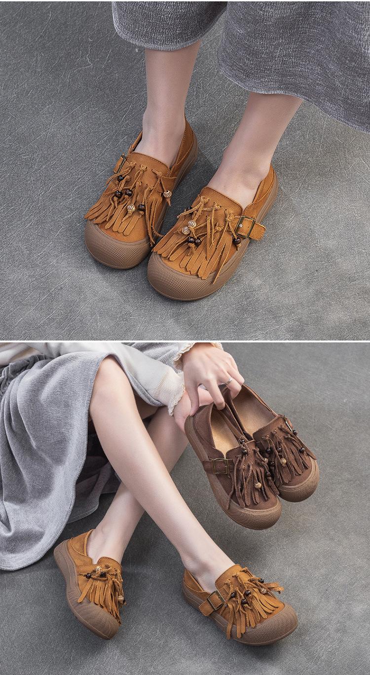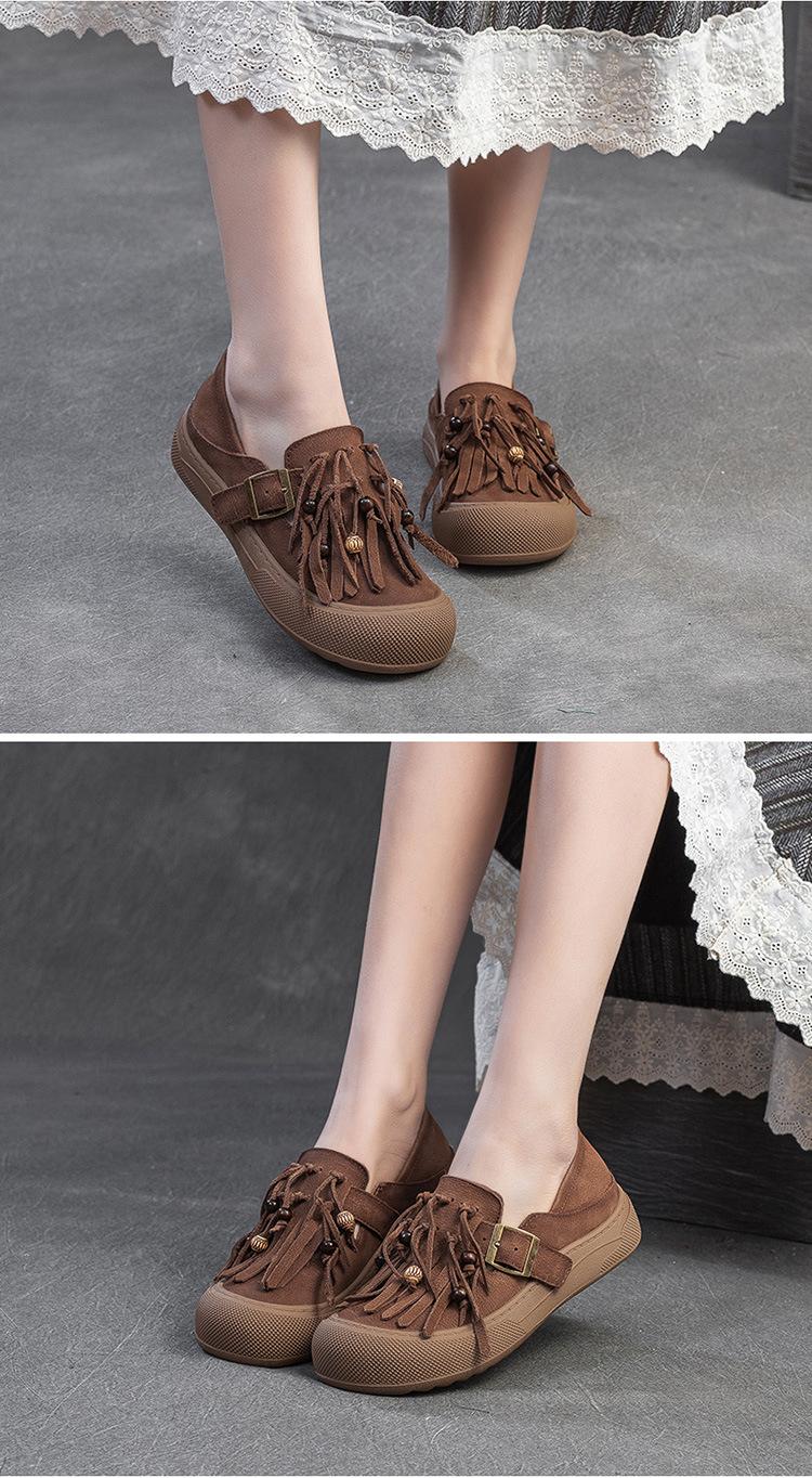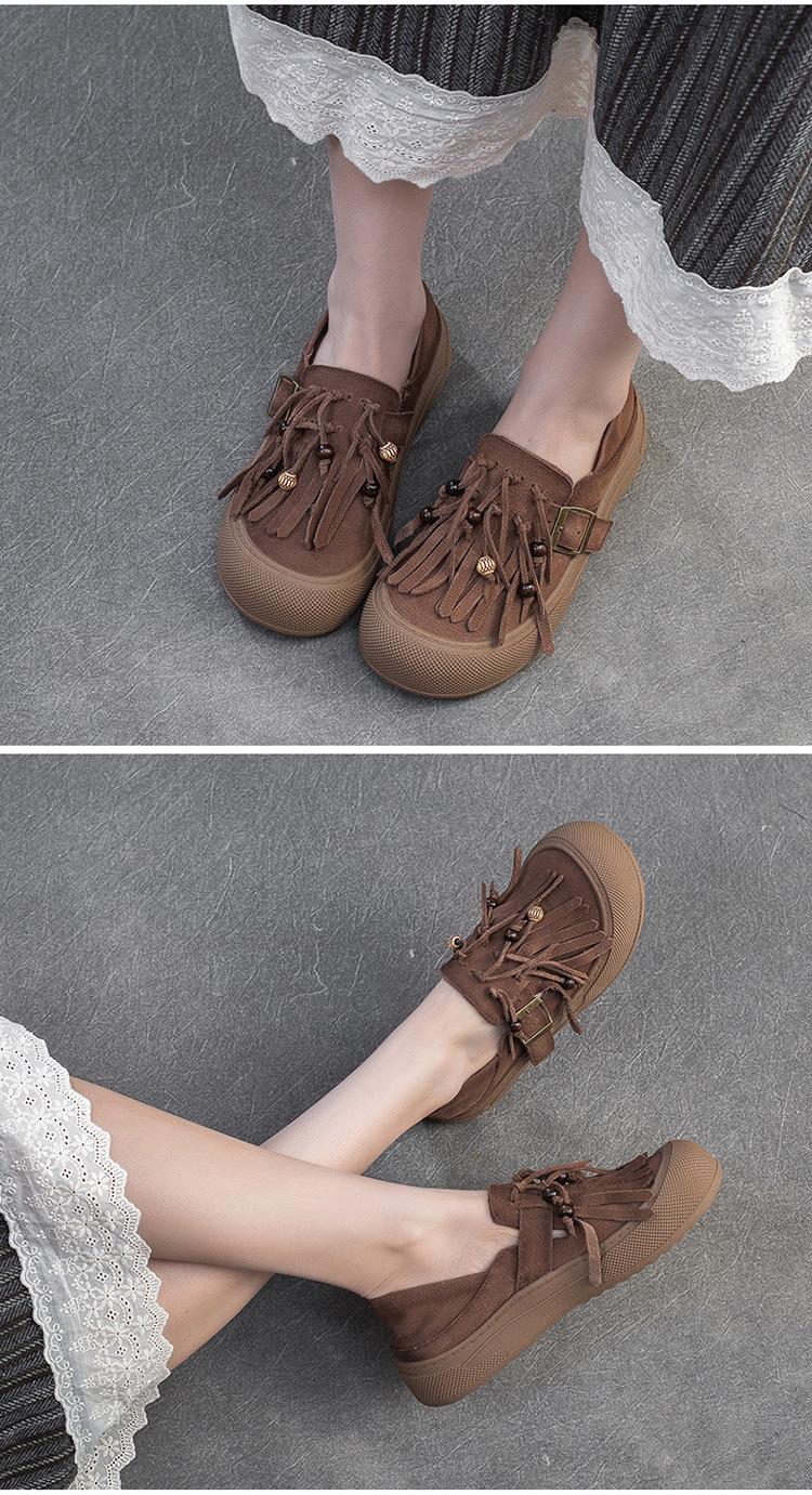 Jie Zhou Otoño 2025 Nuevo Diseño Retro Borla Zapatos Individuales de Mujer Color Sólido Perezoso de Un Paso Casual Moda Versátil