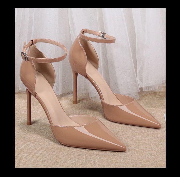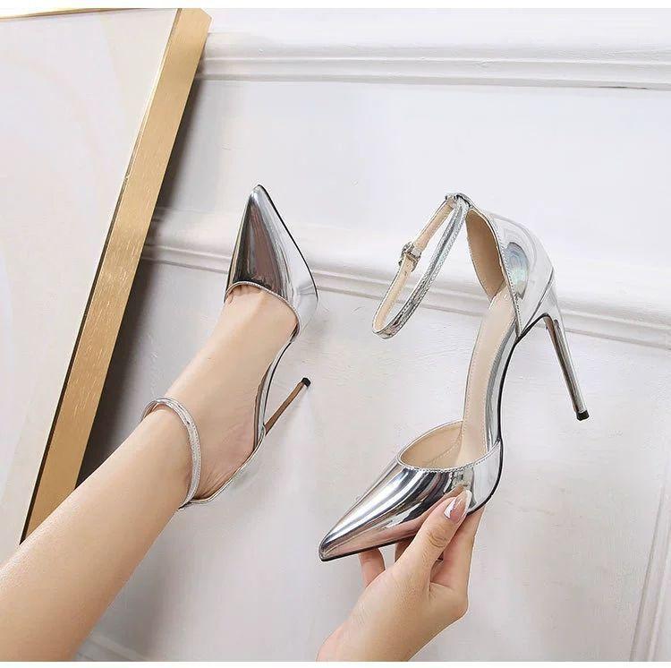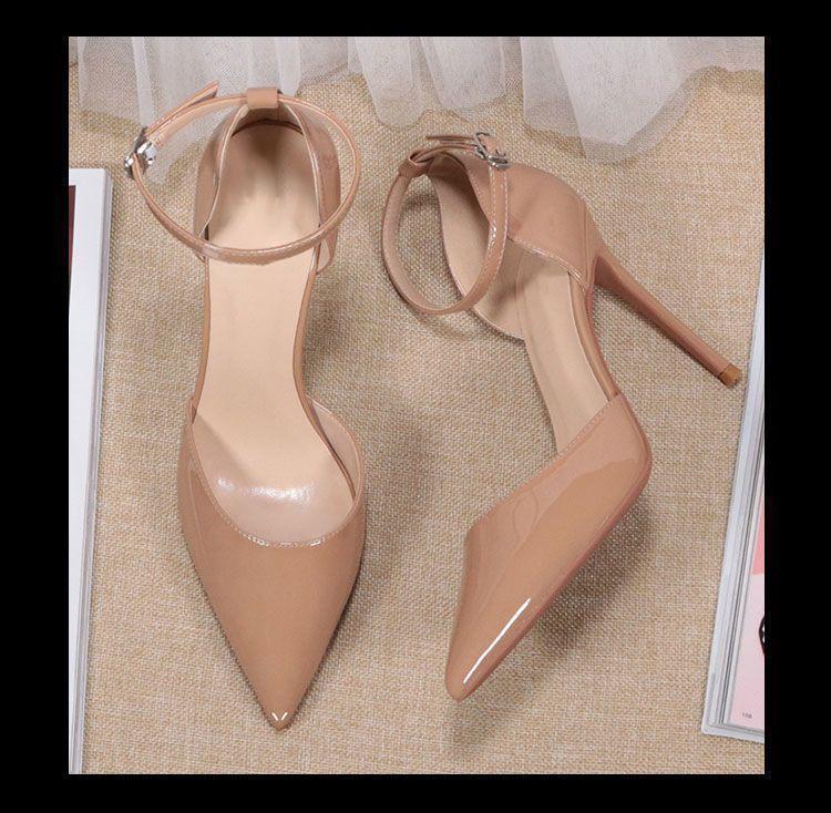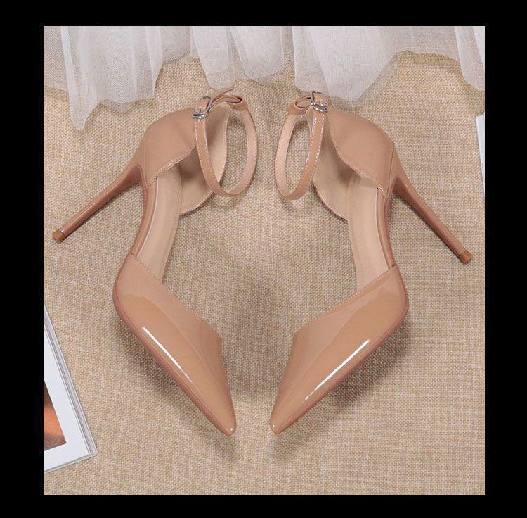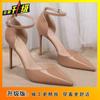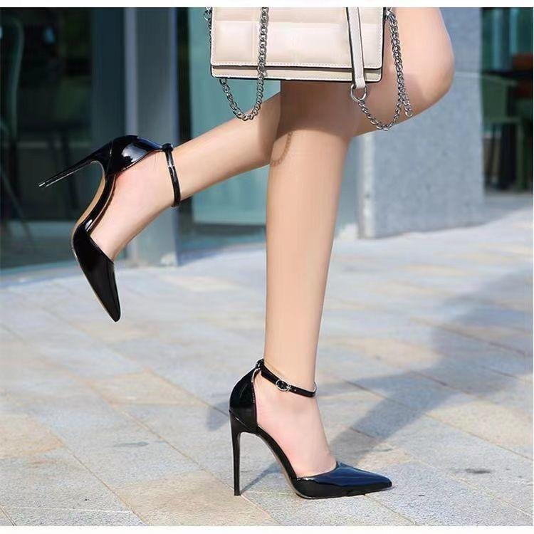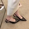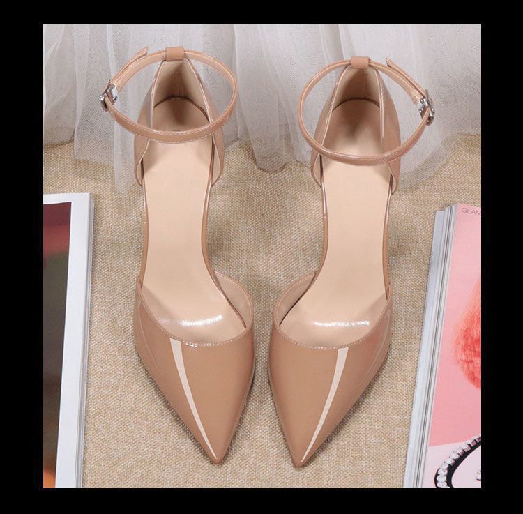 Zapatos de tacón alto de aguja de punta con una tira, de punta cerrada, nuevos de primavera y verano 2025, versátiles franceses, escotados, huecos