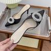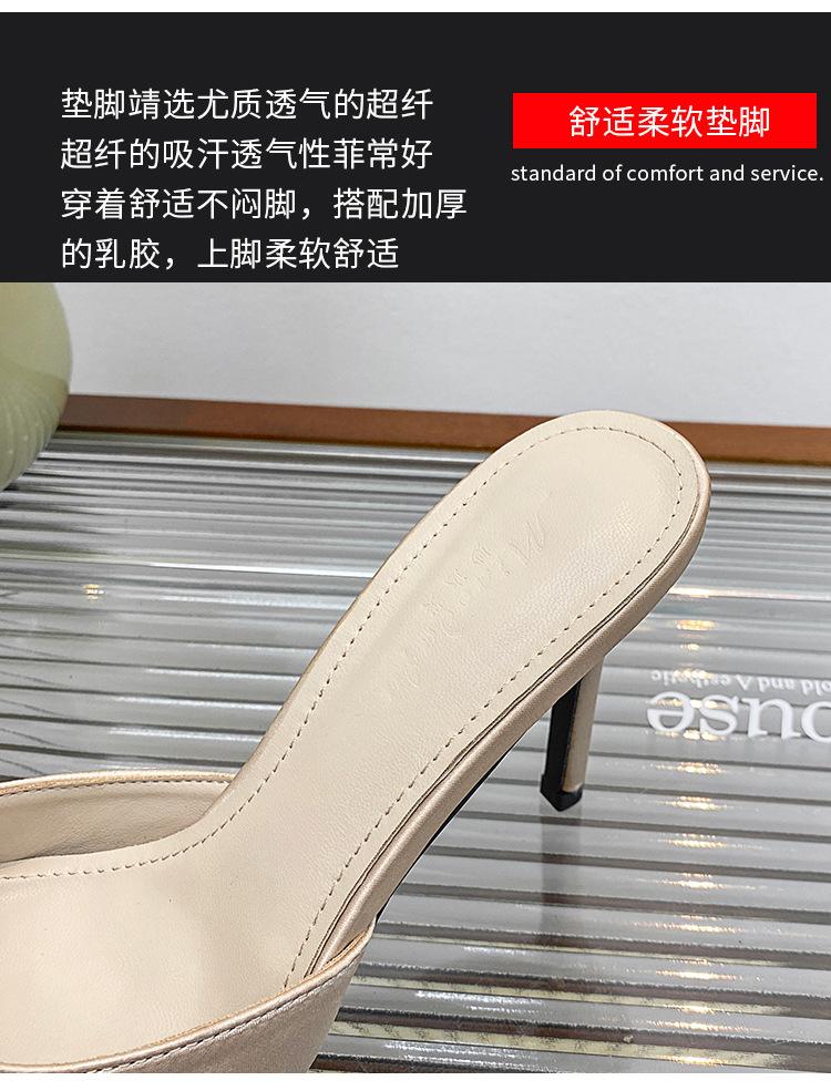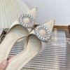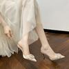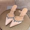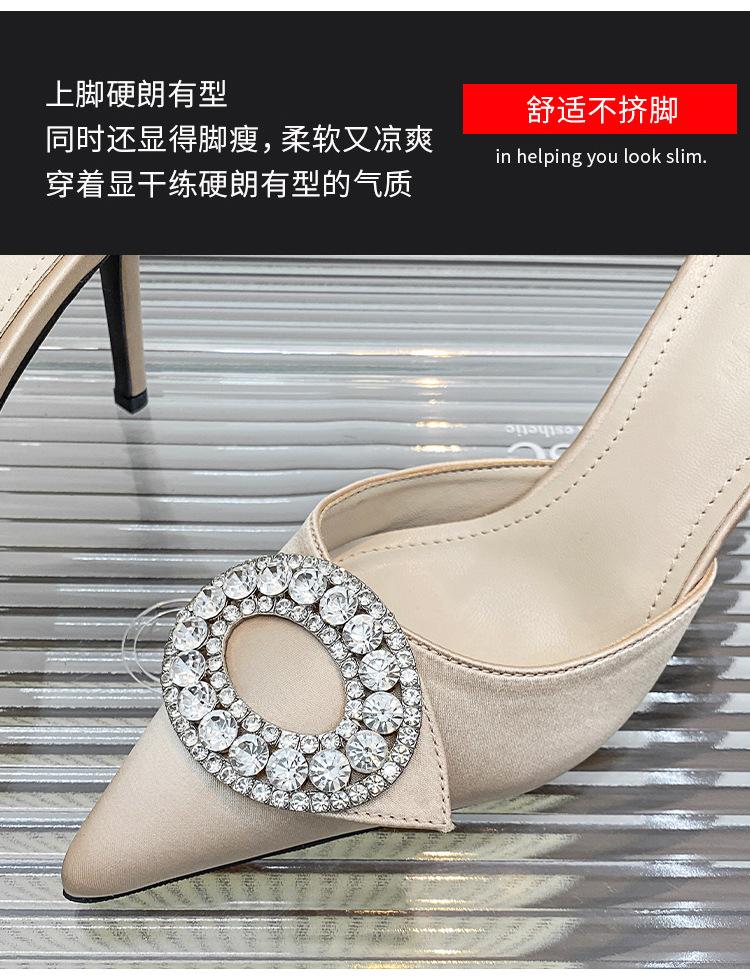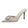 Zapatos Baotou para Mujer 2025 Nuevo Verano Punta Puntiaguda Boca Baja Pedrería Tacones Altos Tacón de Aguja Color Champán Elegante Elegante Sandalias y Zapatillas