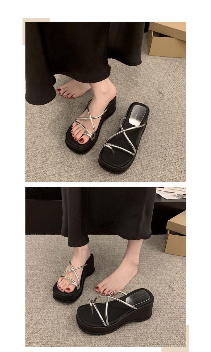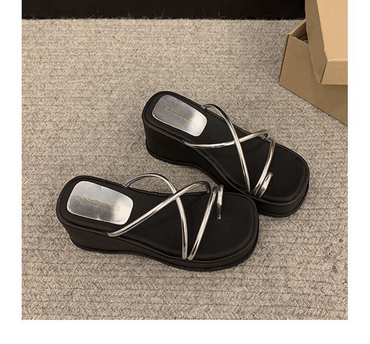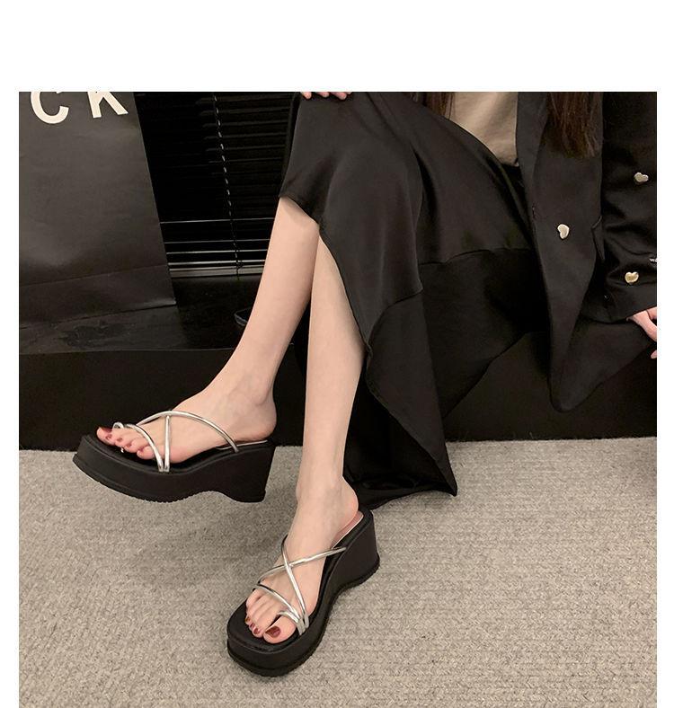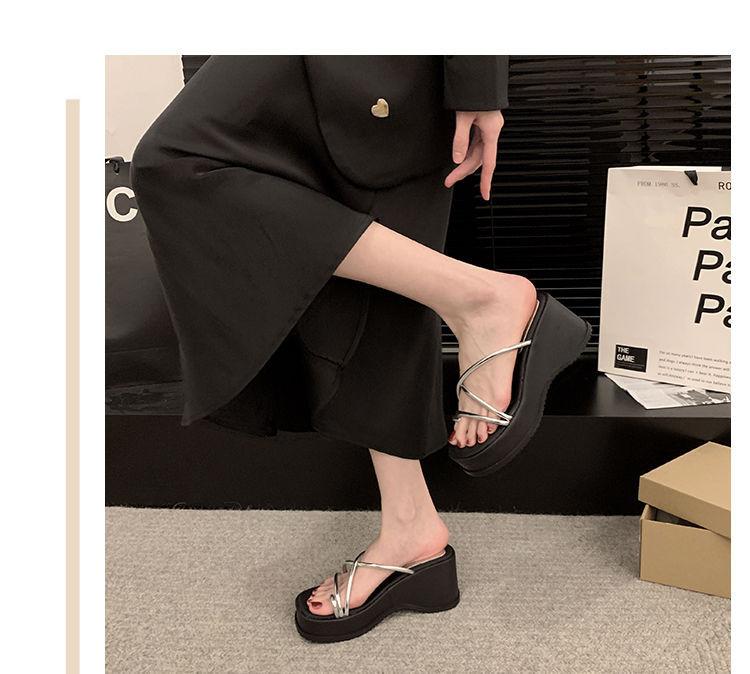 Sandalias de Diapositiva para Mujer Modernas y Hermosas 2025 Nueva Moda de Verano de Alta Gama Cuña Zapatillas de Suela Gruesa